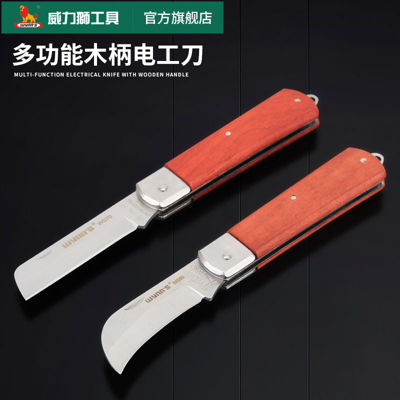 天猫威力狮电工刀直弧刃弯头电工剥皮刀电线电缆削皮刀折叠剥线嫁接刀