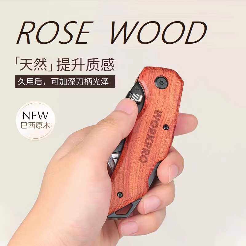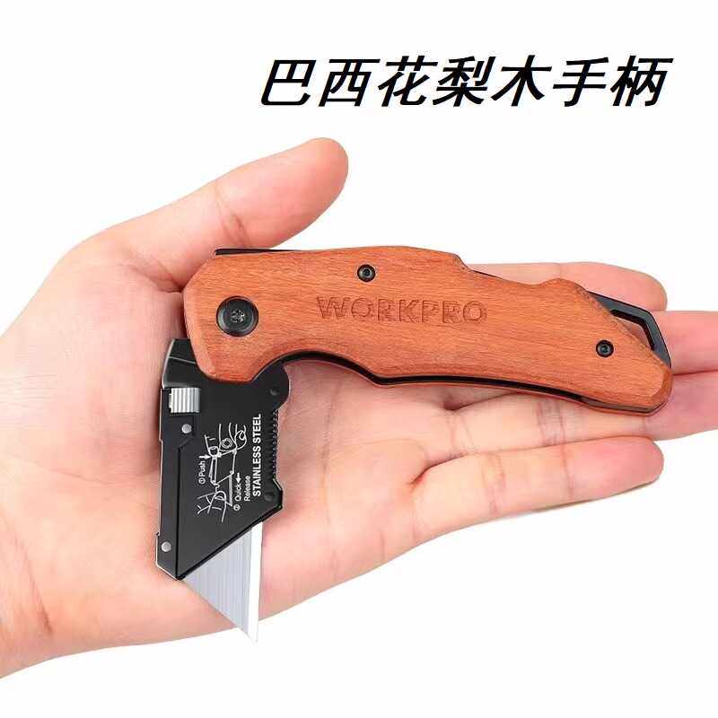 淘宝万克宝W011057N木柄背锁折叠美工刀壁纸刀割电缆剥皮毛毯电工专用