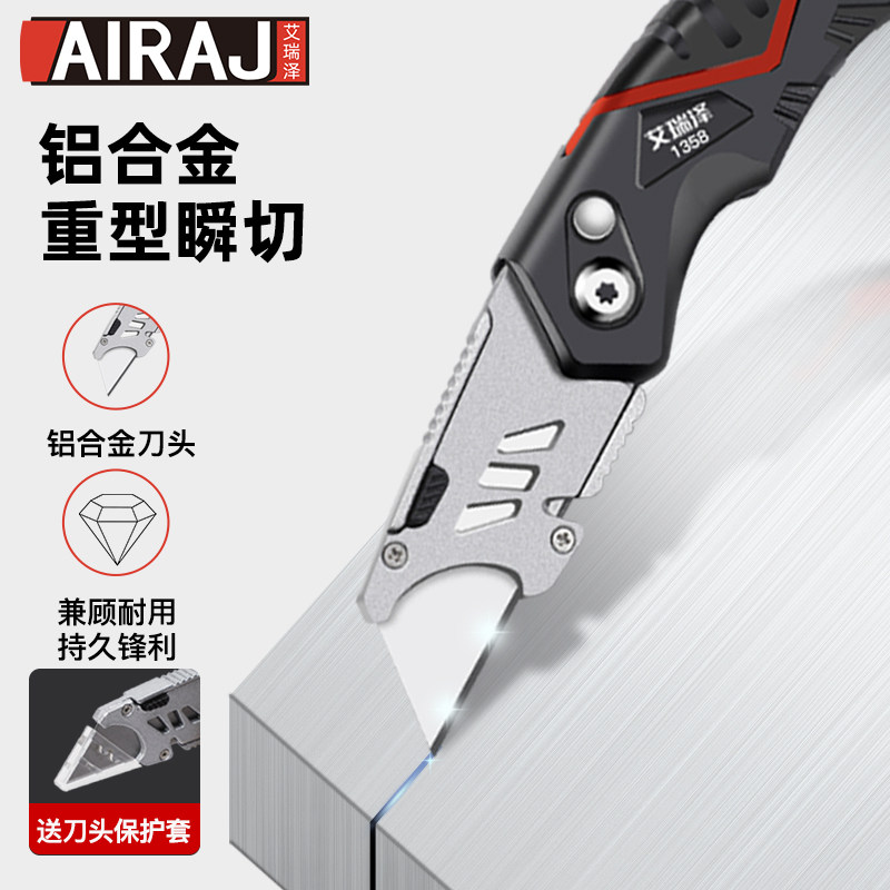 天猫艾瑞泽美工刀重型全钢加厚工具折叠耐用壁纸刀专用切割剥皮电工刀