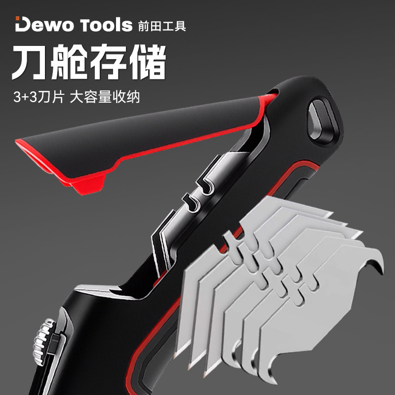 DEWO美工刀架不锈钢壁纸刀工业级电缆剥皮电工刀6合1多功能耐用刀