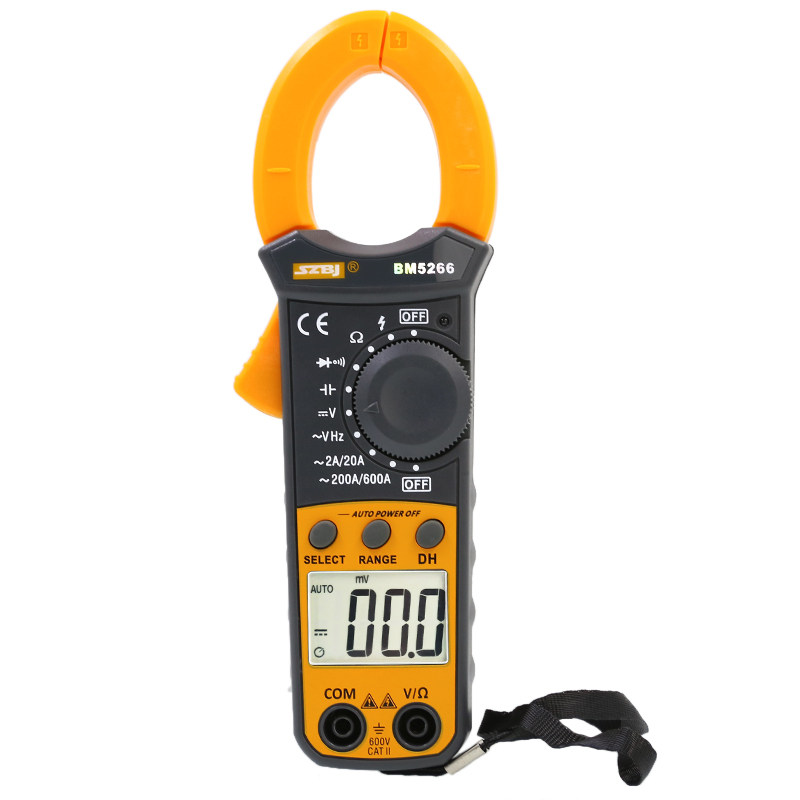 滨江BM5266是一款多功能数字钳形万用表,集交流电流测量、电压、电阻、电容、通断测试及温度检测于一体,适用于电力、电气维修及工业检测等场景。其非接触式钳头设计可安全测量高达60A的交流电流,无需断开电路,操作便捷高效。配备高清LCD背光显示屏,读数清晰直观,支持数据保持功能。内置温度测量接口,可搭配K型热电偶测温,扩展性强。具备自动量程切换与手动选择模式,适应不同测量需求。整机结构紧凑,符合CAT III安全标准,防护等级高,使用安全可靠。滨江BM5266是电工及技术人员日常检测的理想工具。