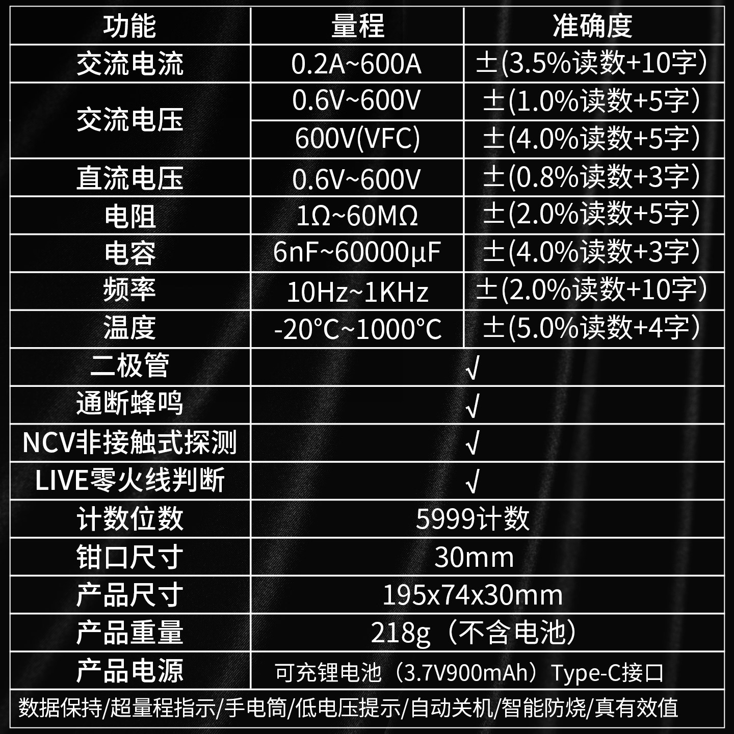 天猫福仪自动钳形万用表语音钳型万用表充电高精度钳流表智能电流表