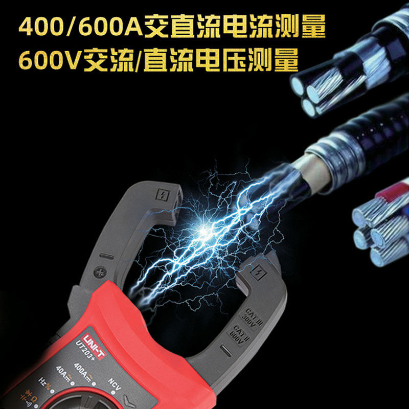 优利德UT204+/201数字钳形表是一款集真有效值测量、高精度与智能操作于一体的交直流万用表。支持自动量程切换,可精准测量交流/直流电压、电流、电阻、电容、频率及通断测试,适用于电工、 HVAC 及工业维护等领域。其钳形设计无需断开电路即可测量电流,操作安全便捷。配备背光LCD显示屏,数据读取清晰,具备数据保持、低电量提示及自动关机功能,提升使用效率与续航能力。真有效值技术确保在非线性负载下仍能获得准确读数,是专业用户和DIY爱好者的理想工具。