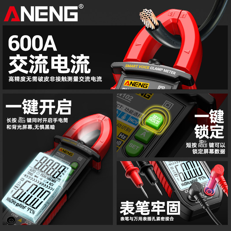 淘ANENG钳形表万用表数字高精度电阻电工多功能交直流钳型电流表