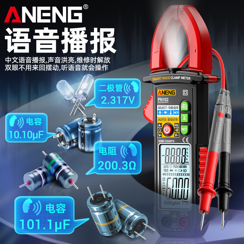 淘宝智能语音数字钳形表高精度多功能钳型电流表电工专用电容万能表