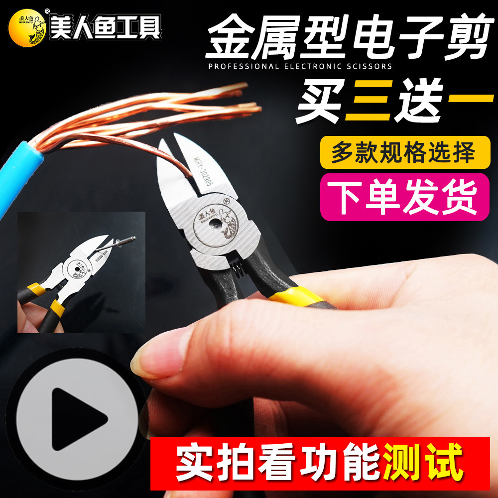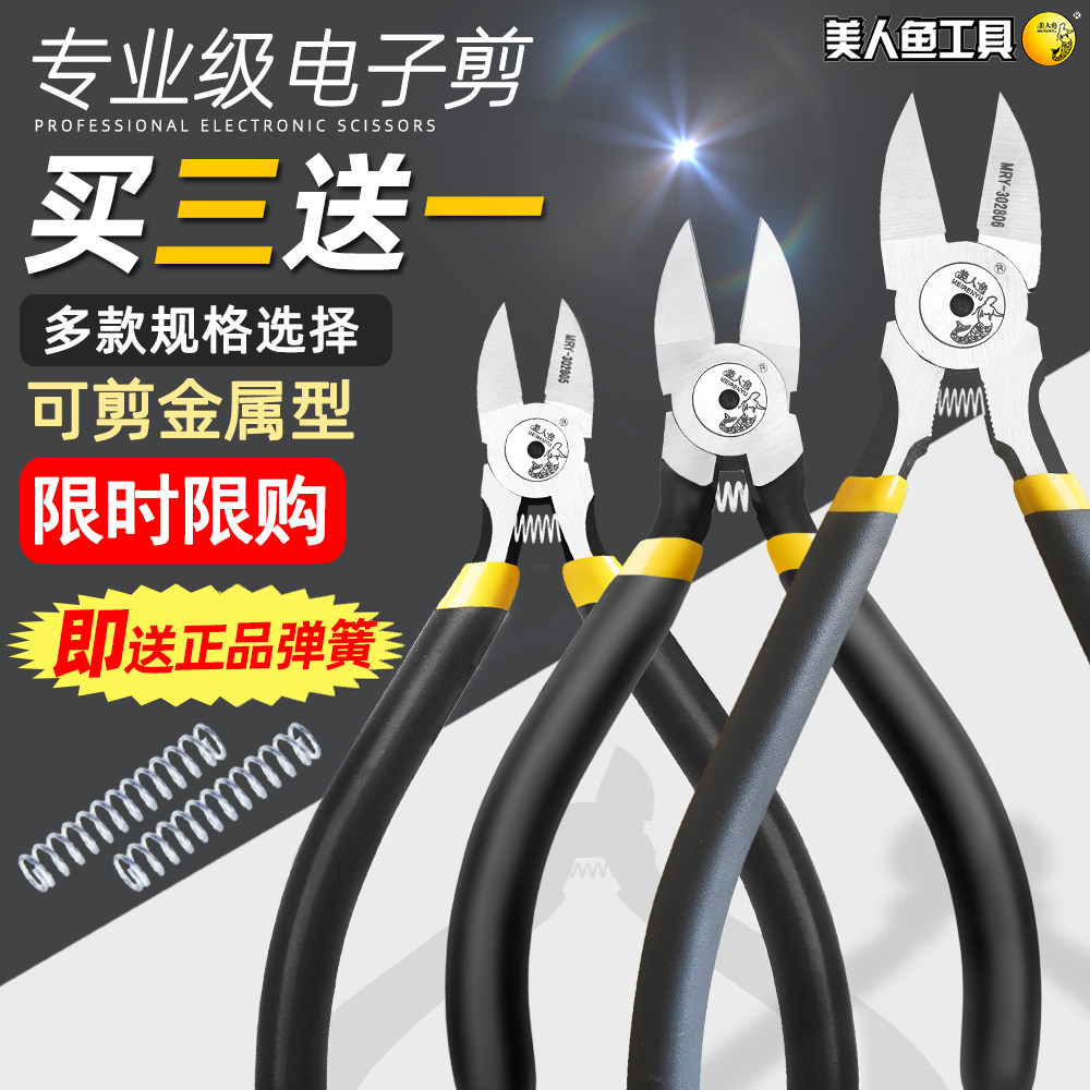 淘宝美人鱼水口钳5寸6寸剪钳斜口钳剪钢丝剪线钳电子剪电工剪偏口钳子