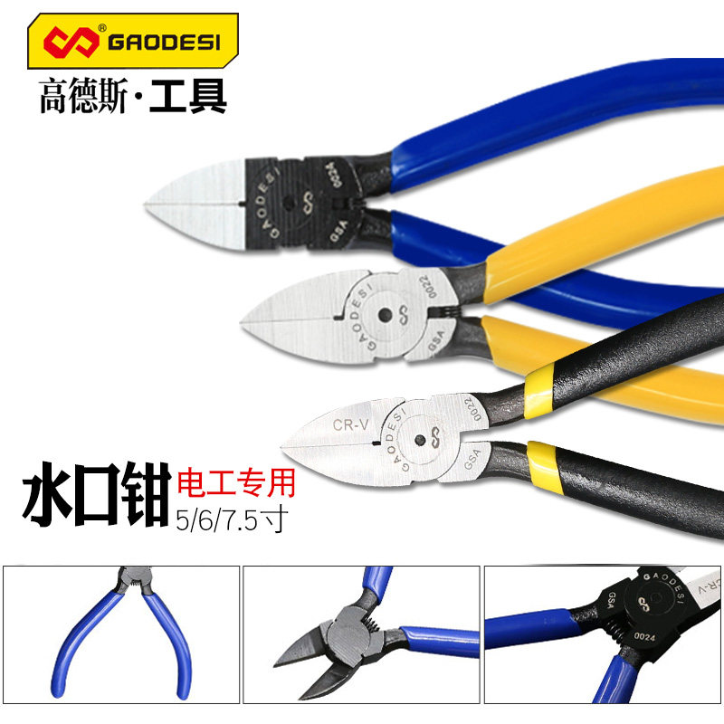 天猫高德斯水口钳6寸斜嘴钳工业级电子钳剪线钳5寸电工斜口钳多功能钳