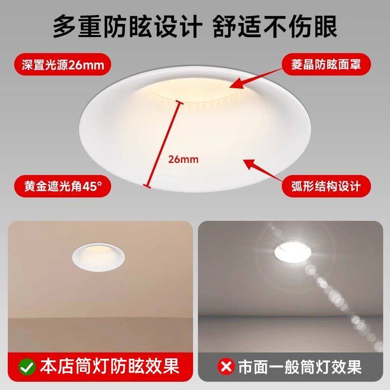 天猫无边框非预埋led筒灯75mm嵌入式家用客厅无主照明深防眩护眼孔灯