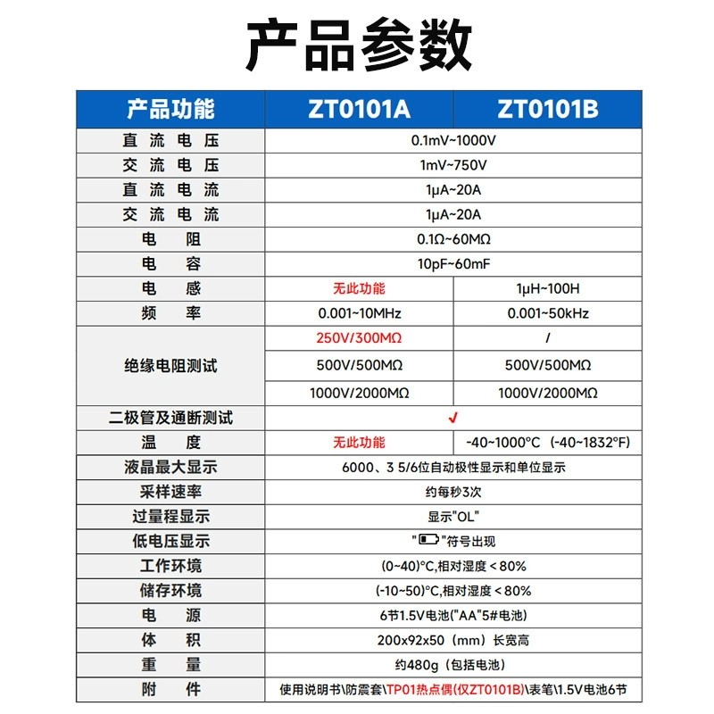 淘宝正泰ZT0101A/B 绝缘电阻测试仪多功能数字摇表兆欧表万用表二合一