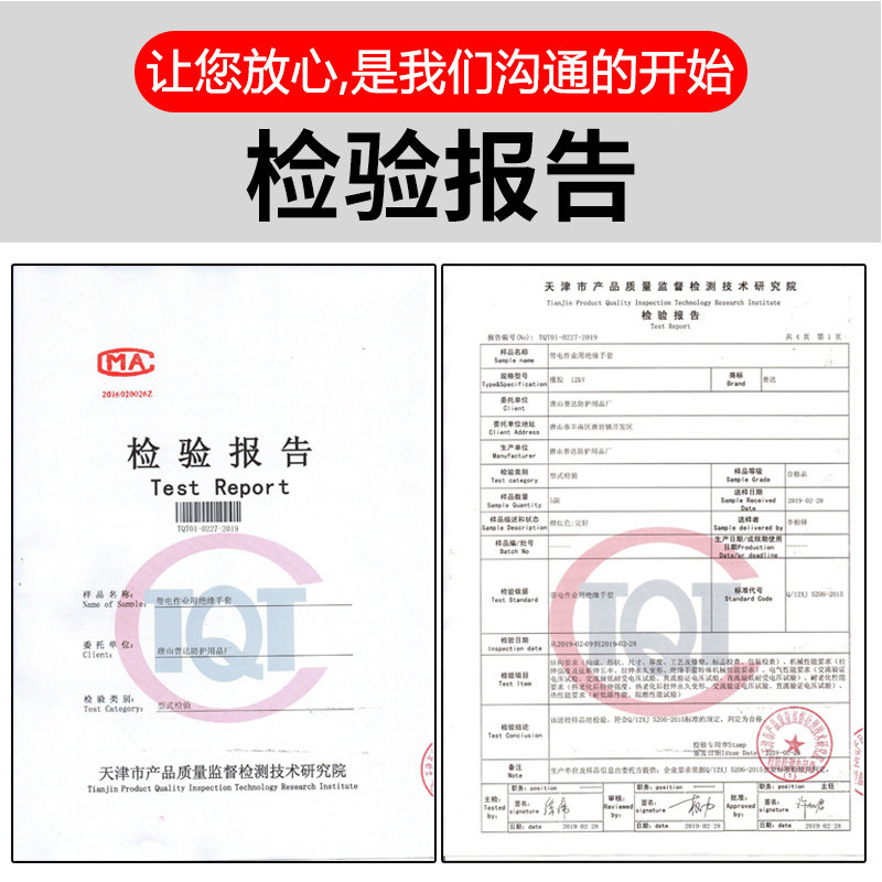 淘10kv绝缘手套12kv35kv带电作业检测报告橡胶高压专业防电电工专用