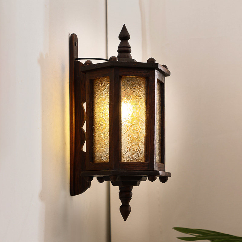 淘宝异丽泰式复古庭院走廊中古壁灯泰国实木卧室中式户外墙灯墙壁灯