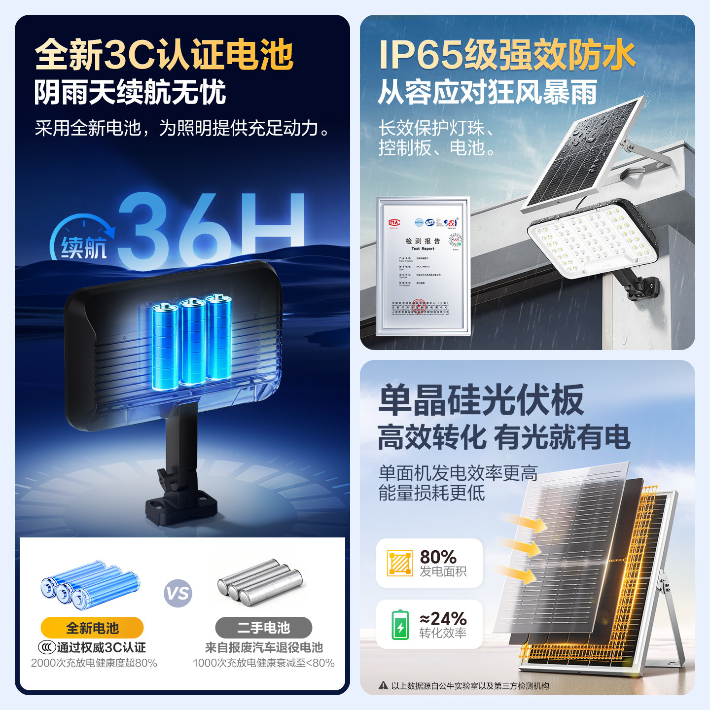 公牛太阳能户外灯2026新款是一款集智能感应、高效节能与防水设计于一体的家用庭院照明灯。采用高品质太阳能板,白天自动充电,夜晚自动亮灯,无需布线,节能环保。内置高灵敏度人体感应模块,人来即亮、人走延时熄灭,提升安全性的同时节省电能。IP65级防水设计,适应雨雪等恶劣天气,持久耐用。高亮LED光源,照明范围广,光线柔和护眼,适用于庭院、阳台、车库、花园等多种户外场景。安装简便,即挂即用,是打造智慧、安全、绿色家居的理想选择。公牛品牌品质保障,让夜晚更明亮、生活更安心。