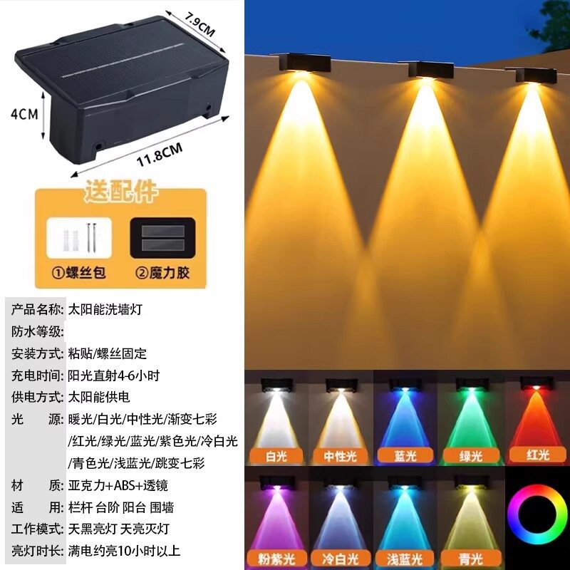 天猫太阳能庭院壁灯户外照明路灯阳台氛围洗墙射灯防水花园布置围墙灯