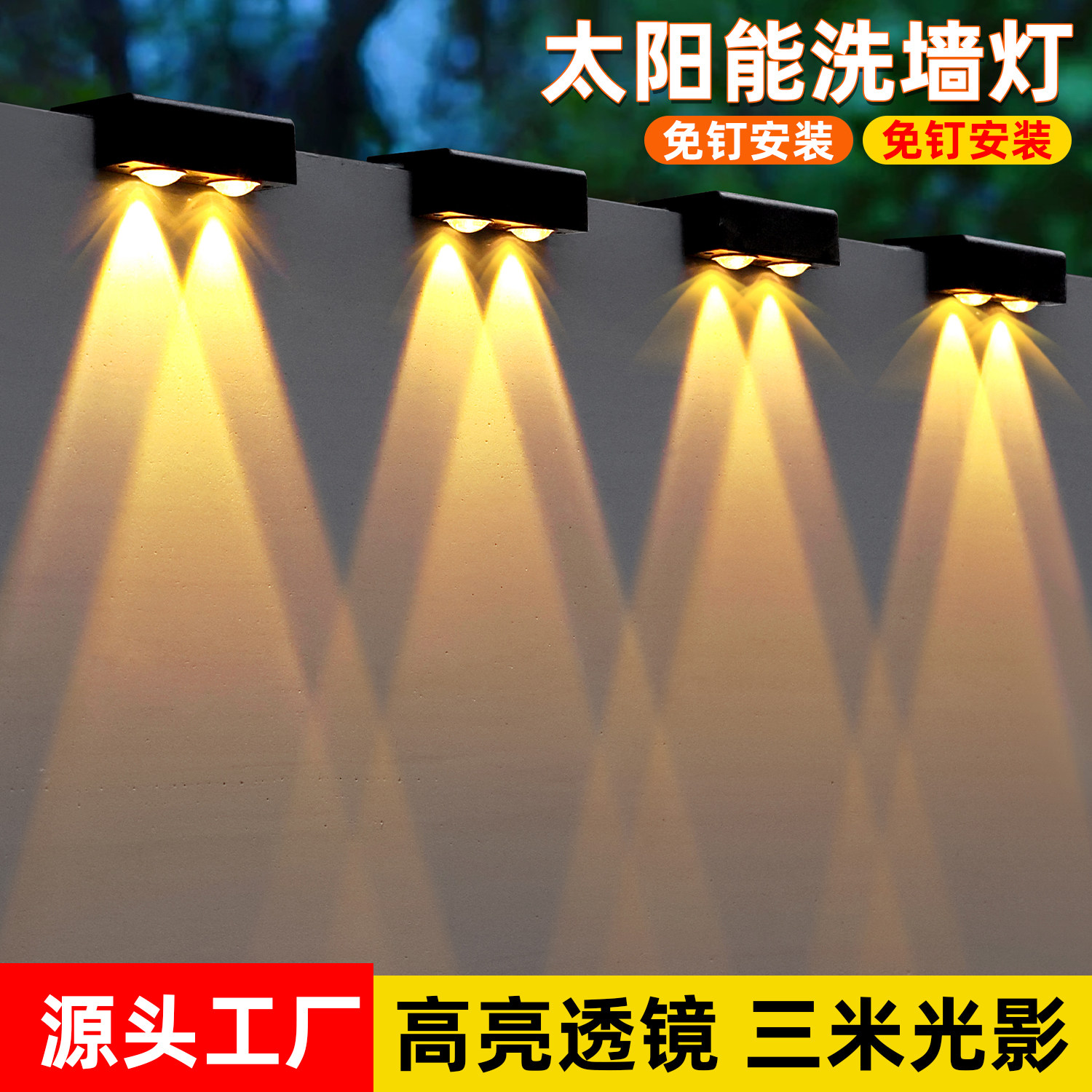 户外壁灯太阳能庭院灯花园别墅围墙射灯大门口家用室外防水洗墙灯