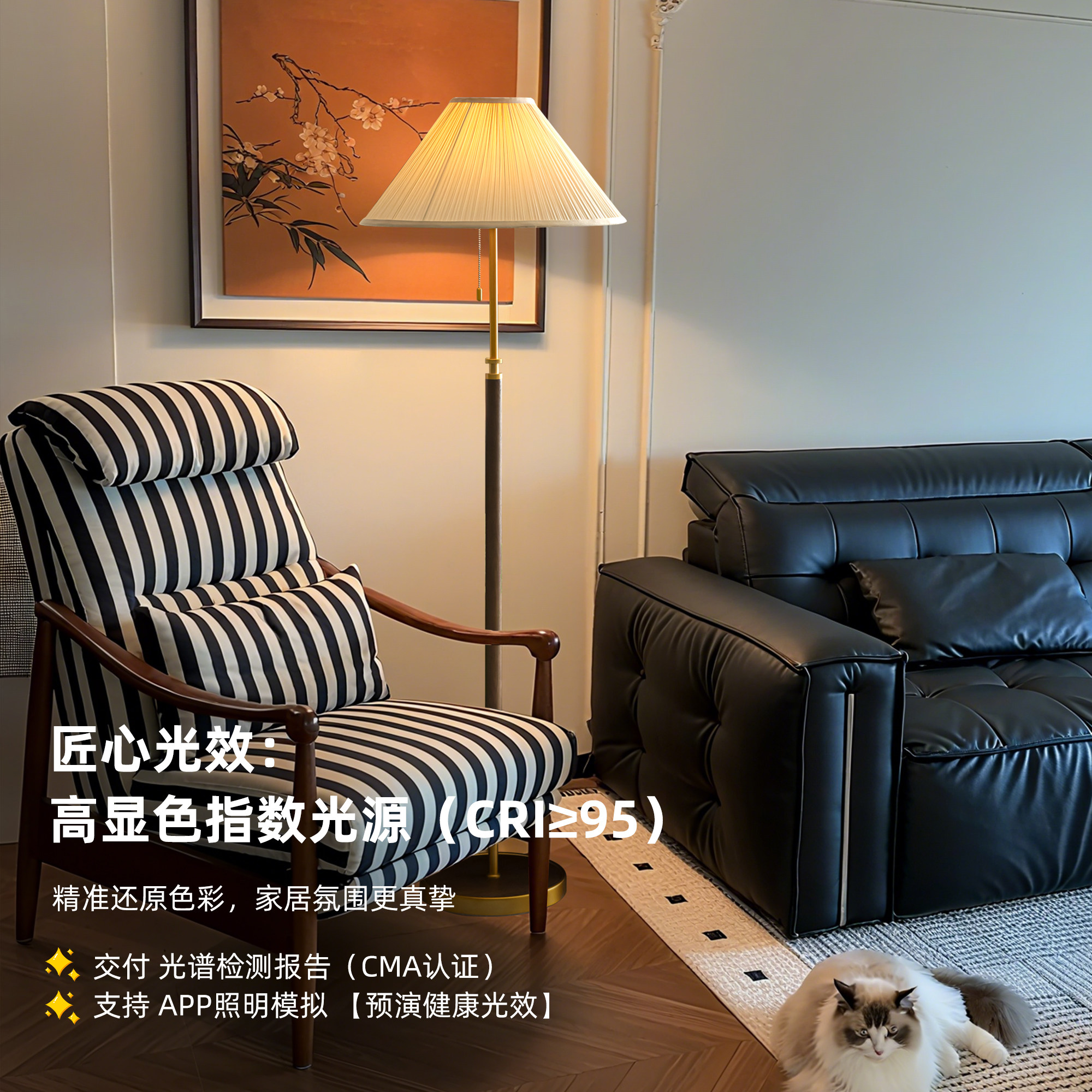 天猫法式复古落地灯客厅沙发旁百褶灯ins风新中式卧室床头灯立式台灯