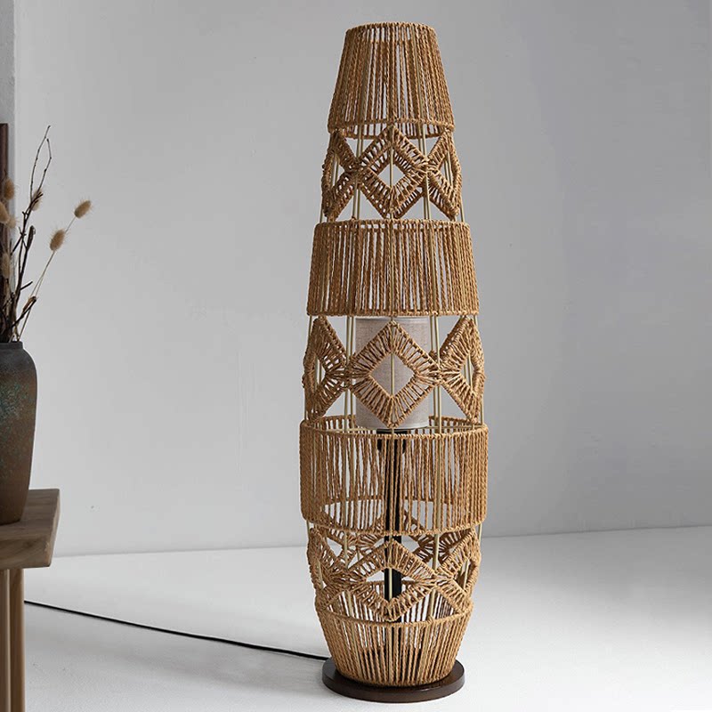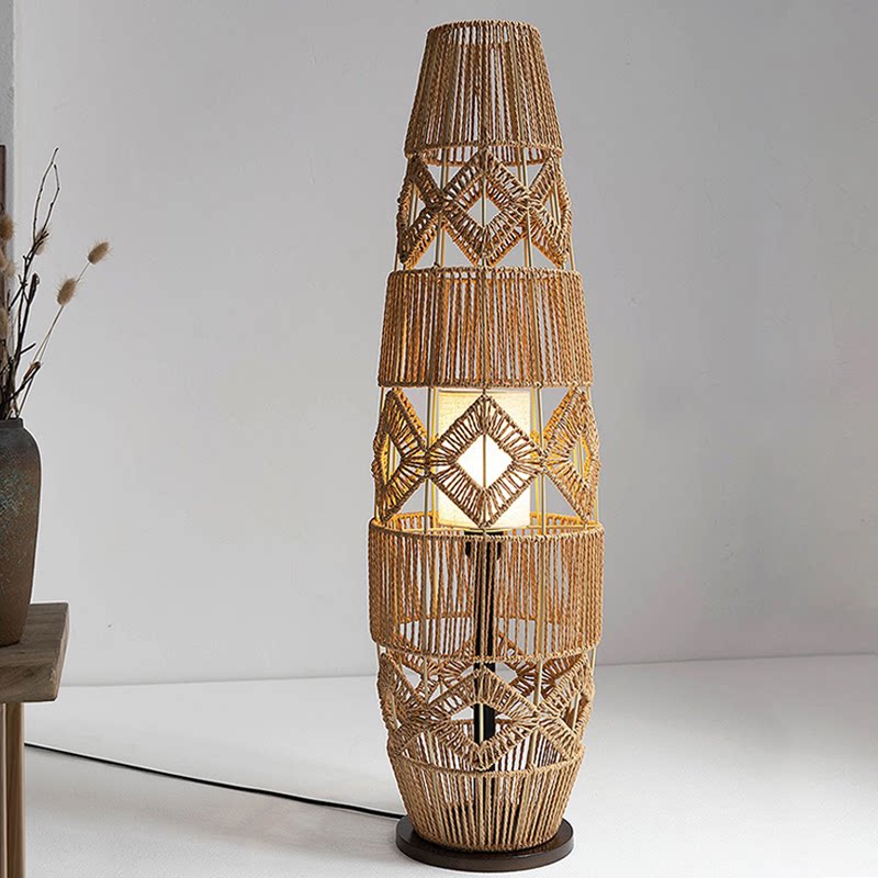 这款侘寂风落地灯融合禅意美学与现代设计,以天然麻绳手工缠绕灯体,搭配温润陶土或哑光金属底座,营造出质朴静谧的氛围。灯光采用柔和暖光,透过麻绳缝隙洒落,光影斑驳,为民宿、客厅、沙发边或卧室增添一抹宁静禅意。整体造型简约而不失质感,完美契合侘寂风“不完美之美”的理念,既是一件实用照明,也是空间中的艺术陈设。无论是独处冥想,还是营造温馨休憩氛围,这款创意立式灯都能悄然提升空间格调,让居者在光影流转间感受内心的平和与安宁。