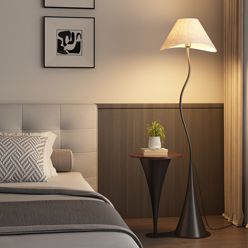 淘奶油风床头柜落地灯客厅沙发旁卧室边几床头柜一体立式台灯氛围感
