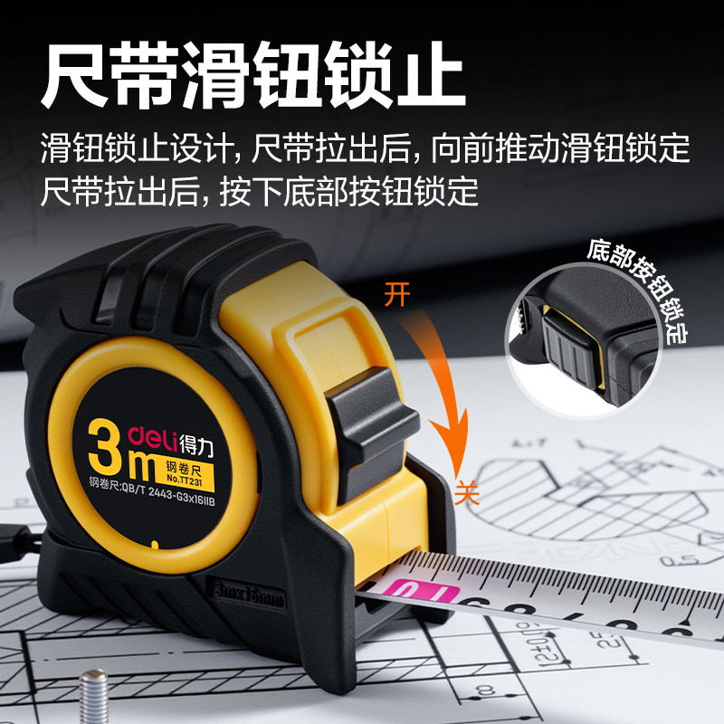 得力卷尺家用5米正品尺子钢卷尺盒尺圈量尺加厚加硬3米自锁高精度