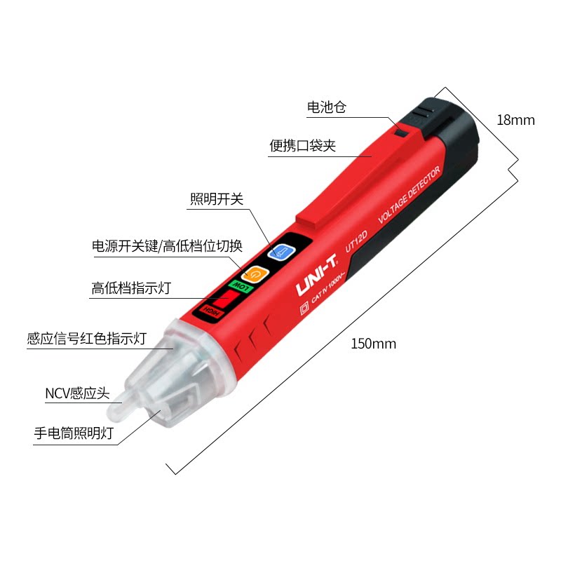 优利德UT12D非接触式感应测电笔是一款专为家庭和电工设计的便携式检测工具,适用于零线、火线识别及电路断点查找。采用非接触式感应技术,无需直接接触导体即可安全检测交流电压,有效保障操作安全。高灵敏度探头可精准识别带电状态,配合声光双重提示(LED灯闪烁与蜂鸣声),即使在昏暗环境中也能清晰判断。其紧凑轻便的设计便于携带,广泛应用于插座检测、线路排查、开关故障定位等场景。UT12D具备低电压自检与自动关机功能,节能环保,是家庭维修和专业电工的理想助手,兼顾安全性与实用性。