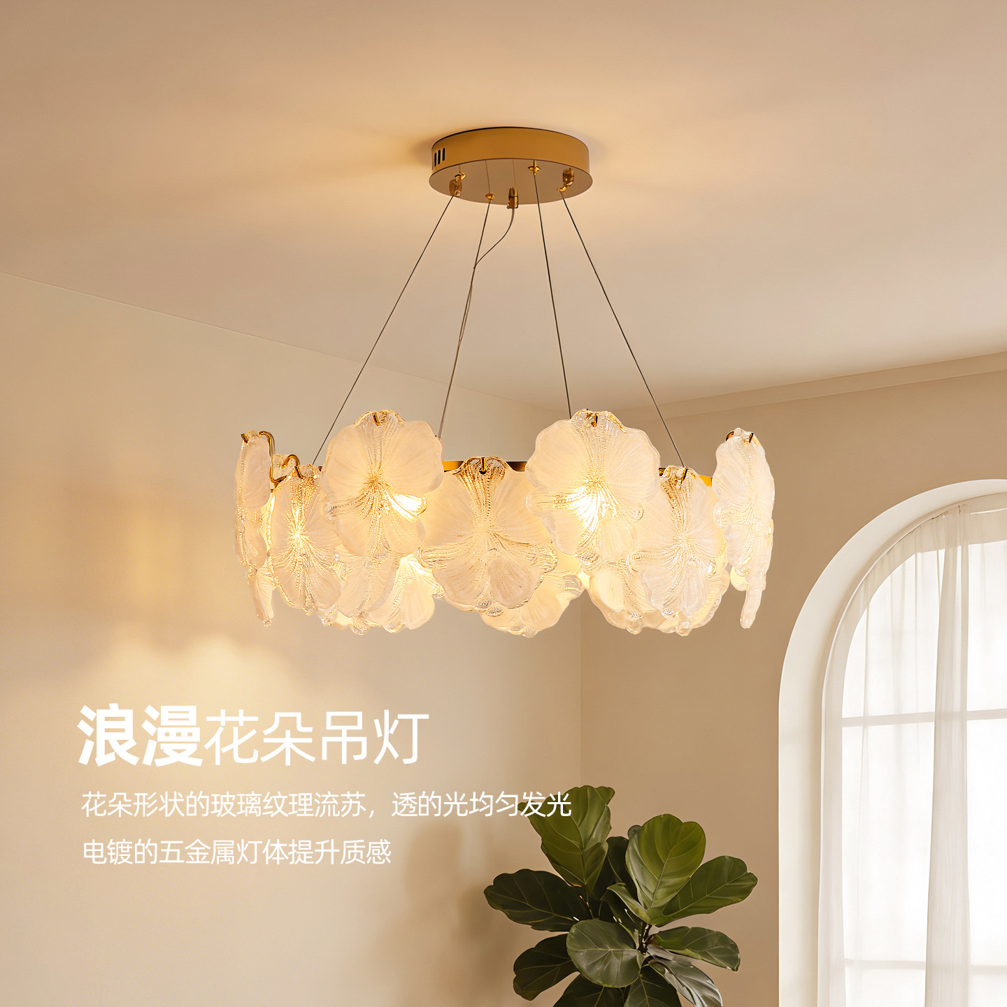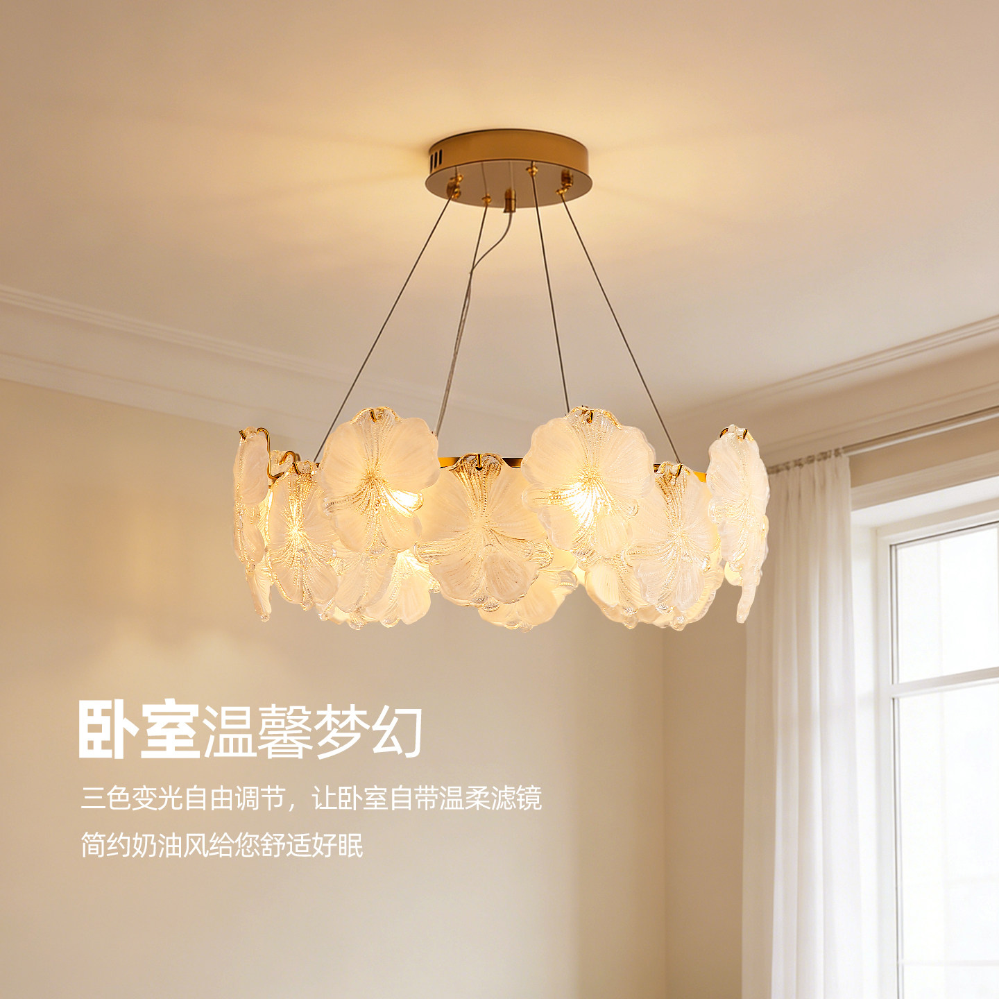 天猫法式中古风客厅吊灯奶油风高级感花朵卧室房间灯简约轻奢餐厅吊灯