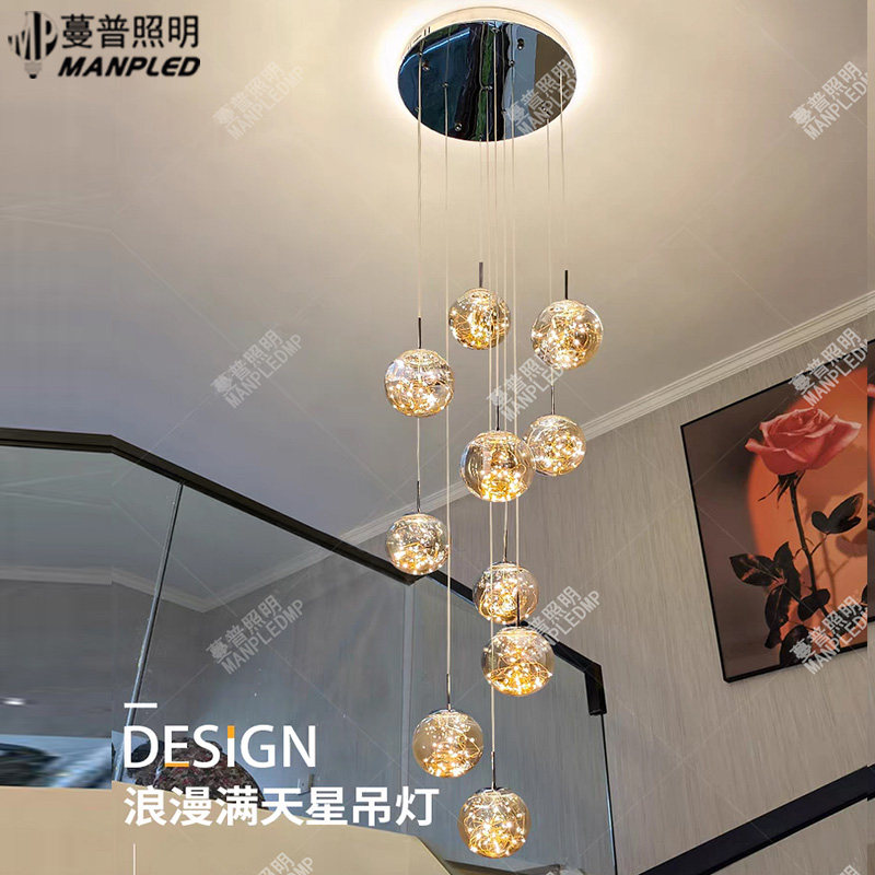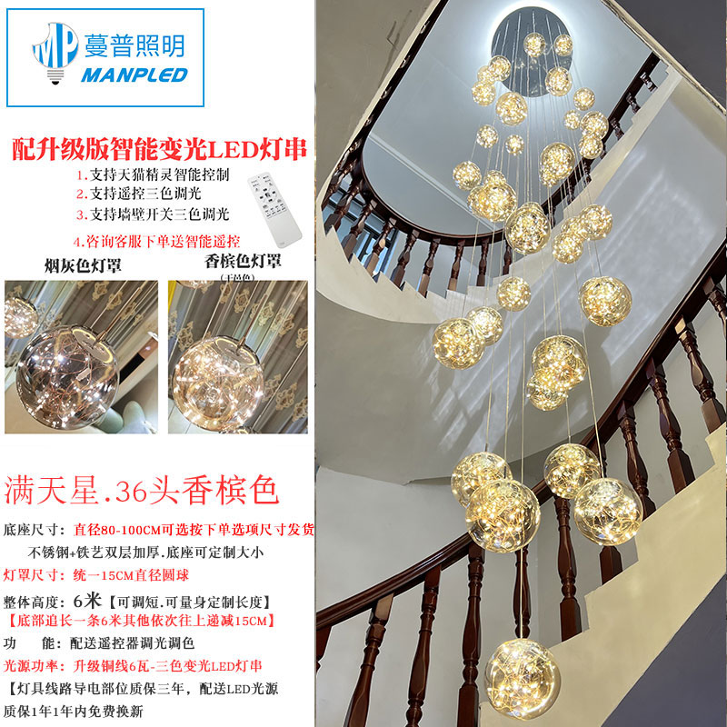 天猫满天星楼梯灯长吊灯复式楼智能现代简约轻奢别墅loft公寓客厅吊灯