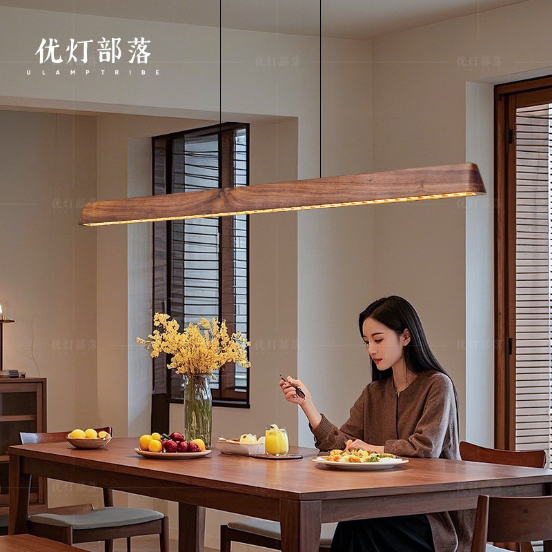 淘宝2026新款餐厅吊灯胡桃木实木护眼极简办公室茶室一字长条餐桌吊灯