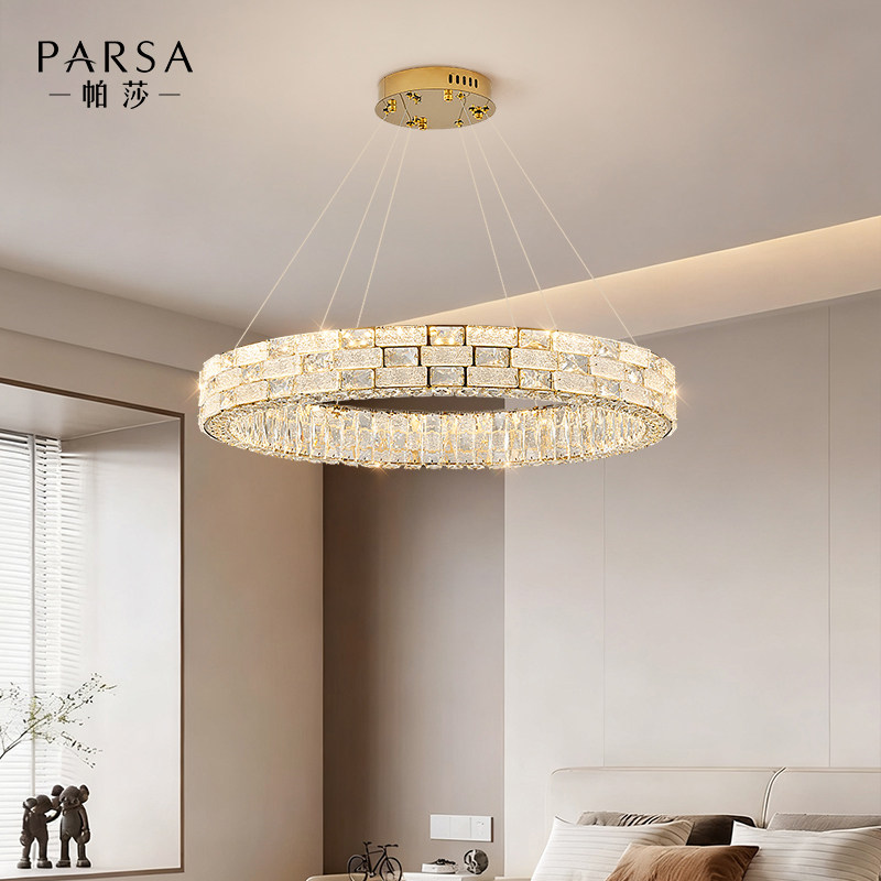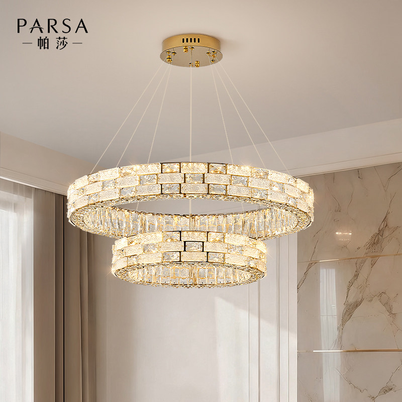 帕莎2026新款现代轻奢客厅吊灯,以极简圆环设计融合璀璨水晶元素,诠释高级感与艺术美学的完美平衡。灯体采用优质金属材质,表面经精细电镀处理,质感细腻,光泽持久。多层环形结构错落有致,搭配高透光水晶饰片,光线折射柔和而富有层次,营造温馨优雅的居家氛围。适用于客厅、餐厅、别墅挑空区等多种空间,既彰显品味又不失实用性。智能调光设计兼容多种光源,满足不同场景需求。帕莎以匠心工艺与创新设计,重新定义现代轻奢照明,点亮品质生活每一刻。