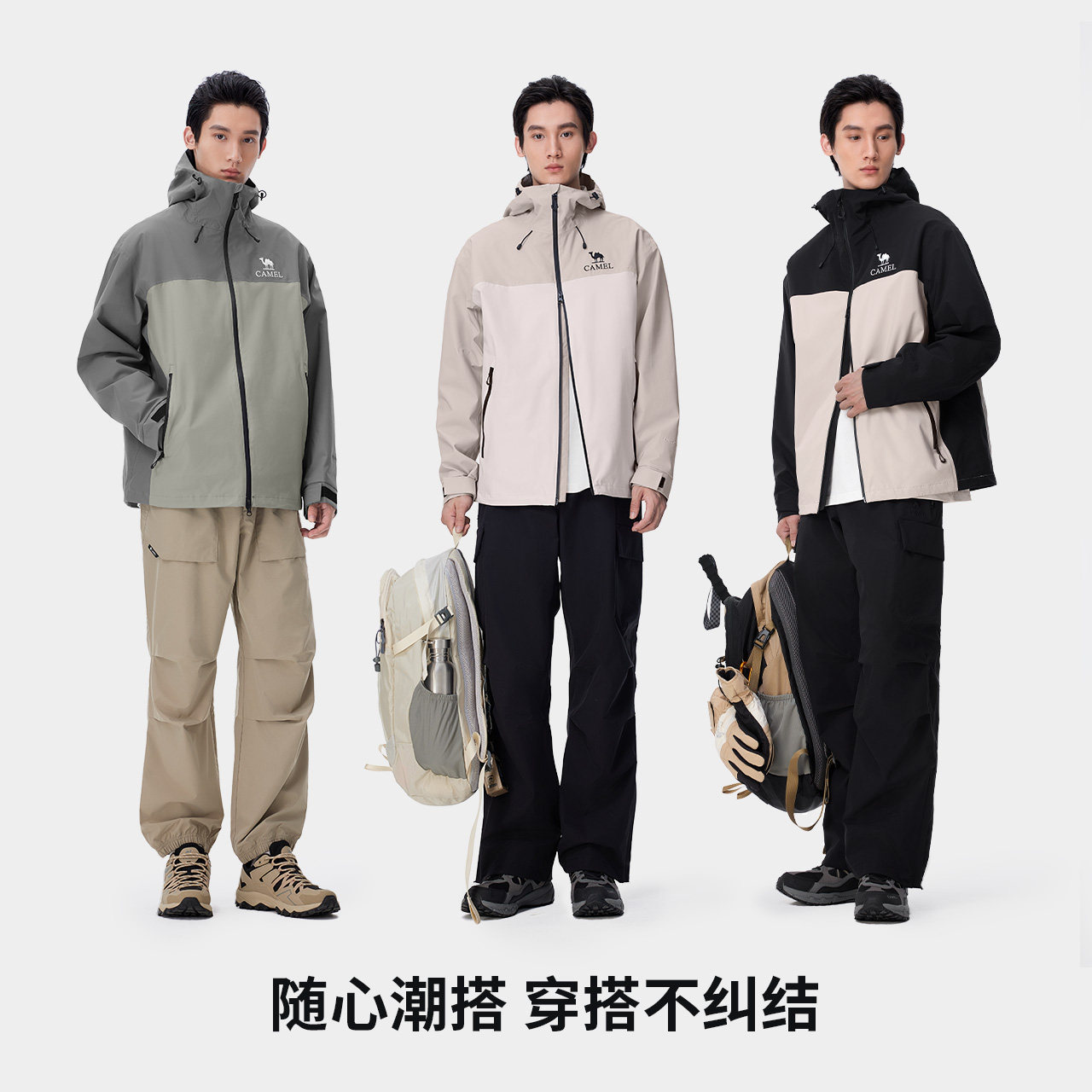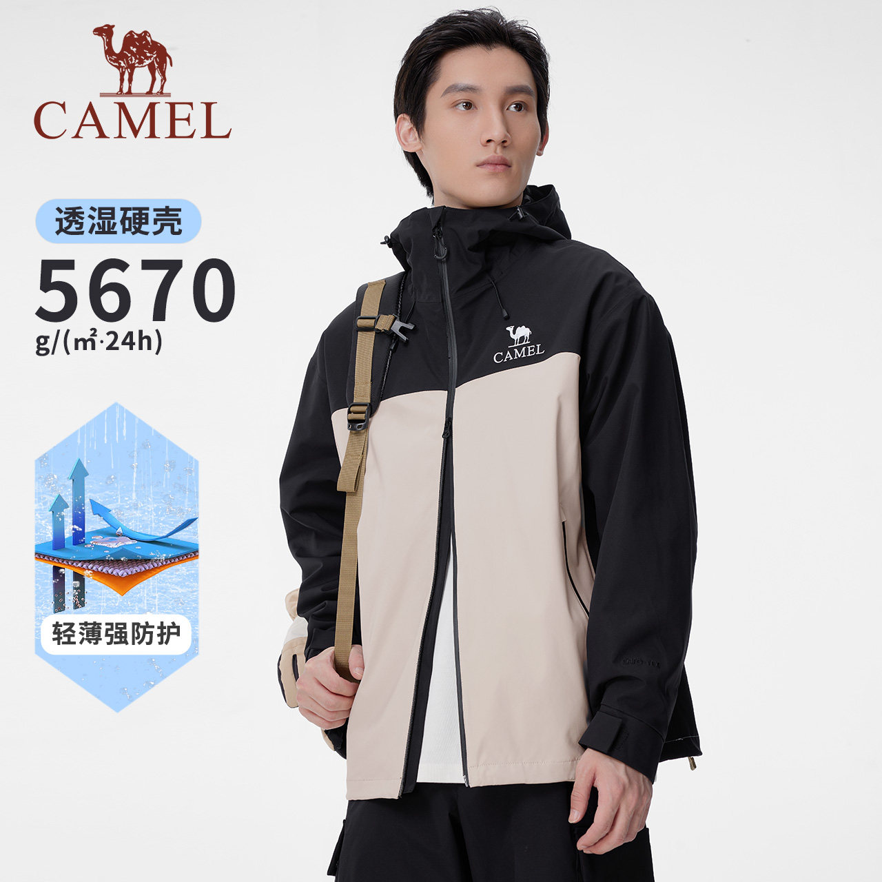 淘宝骆驼男装新款压胶硬壳单层冲锋衣夹克外套进藏工装风衣男款秋