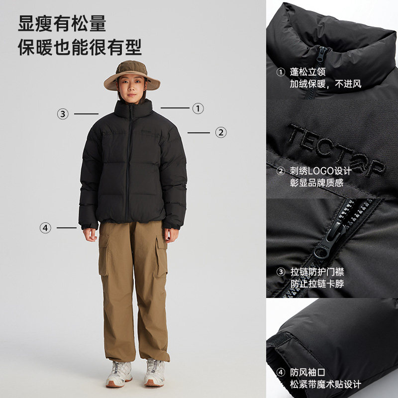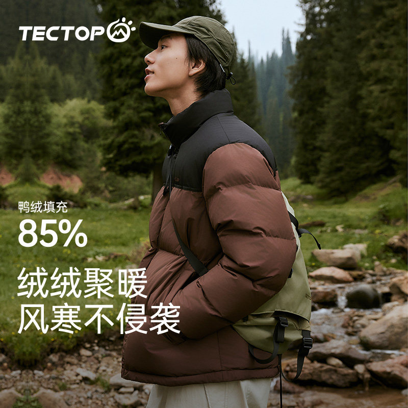 天猫TECTOP探拓户外拼色羽绒服立领防泼水面包服冬季新款男女保暖外套