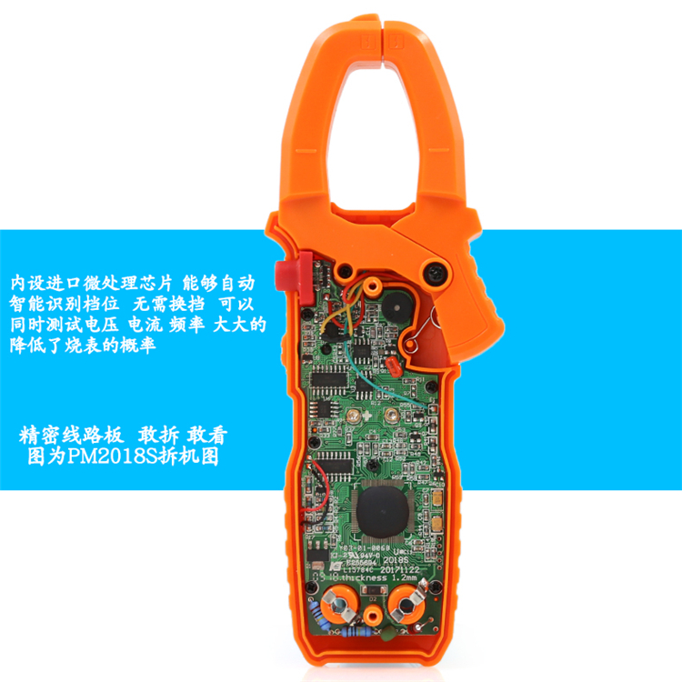 华谊PM2118S/2018S交直流全自动智能防烧数字钳形表万用表是一款集电流、电压、电阻、通断测试等多功能于一体的便携式测量仪器。采用先进的自动量程技术和防烧保护设计,确保操作安全,尤其适合电工、维修人员及工程现场使用。其钳形结构支持非接触式交流/直流电流测量,最大可测2000A,同时具备数据保持、背光显示、低电量提示等实用功能。高精度传感器与智能芯片结合,测量快速准确,响应灵敏。外壳坚固耐用,符合人体工学设计,握感舒适。无论是家庭电路检测还是工业设备维护,华谊PM2118S系列都能提供可靠、高效的测量解决方案,是专业与便捷的完美结合。