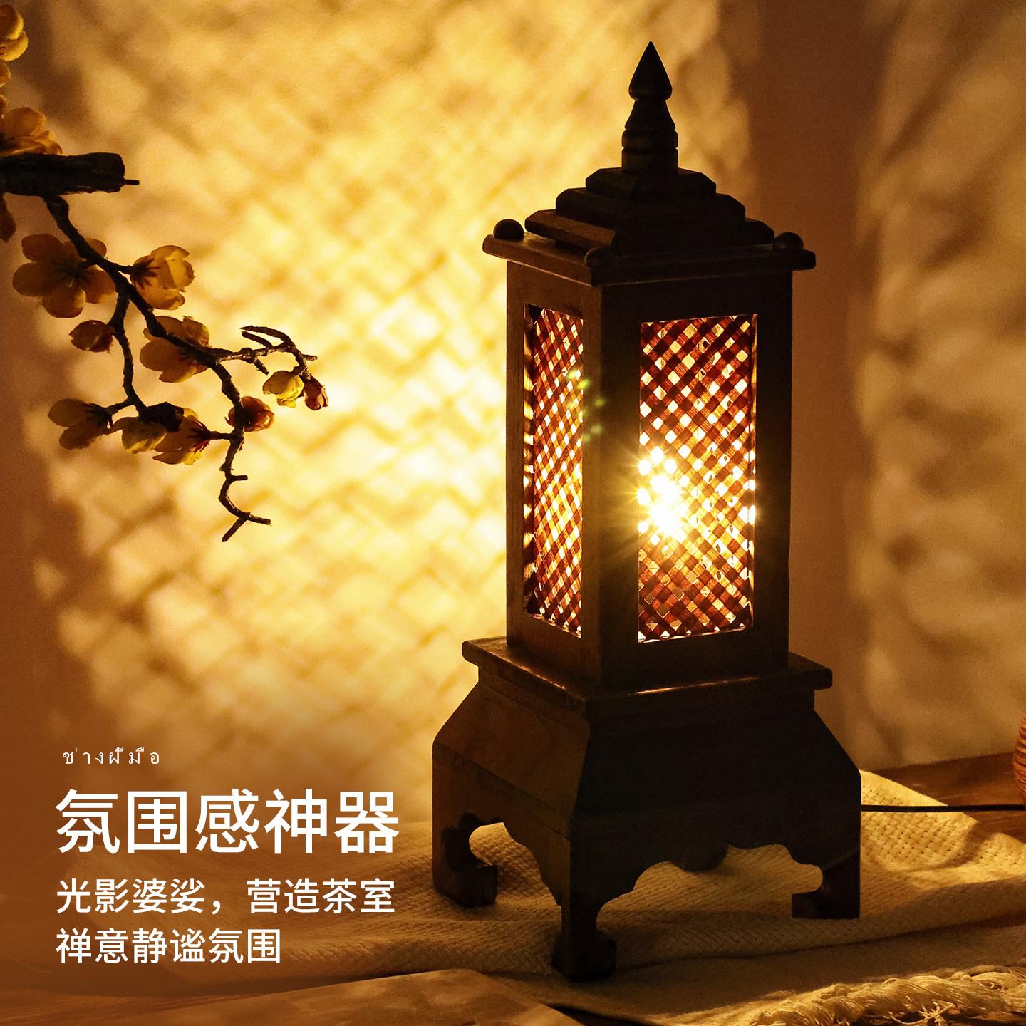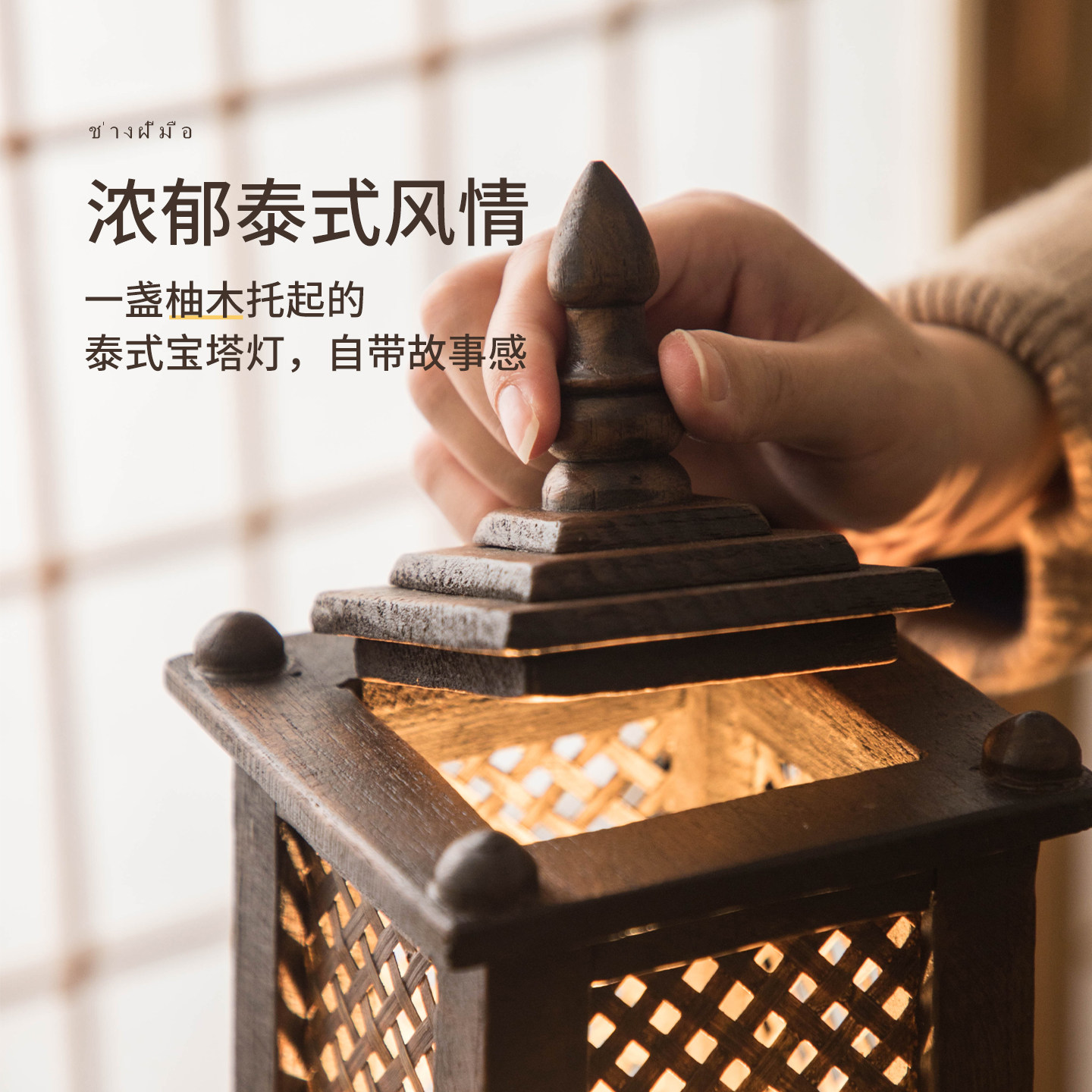 淘宝东南亚卧室实木床头灯复古夜灯古风茶桌台灯中式茶室禅意氛围灯