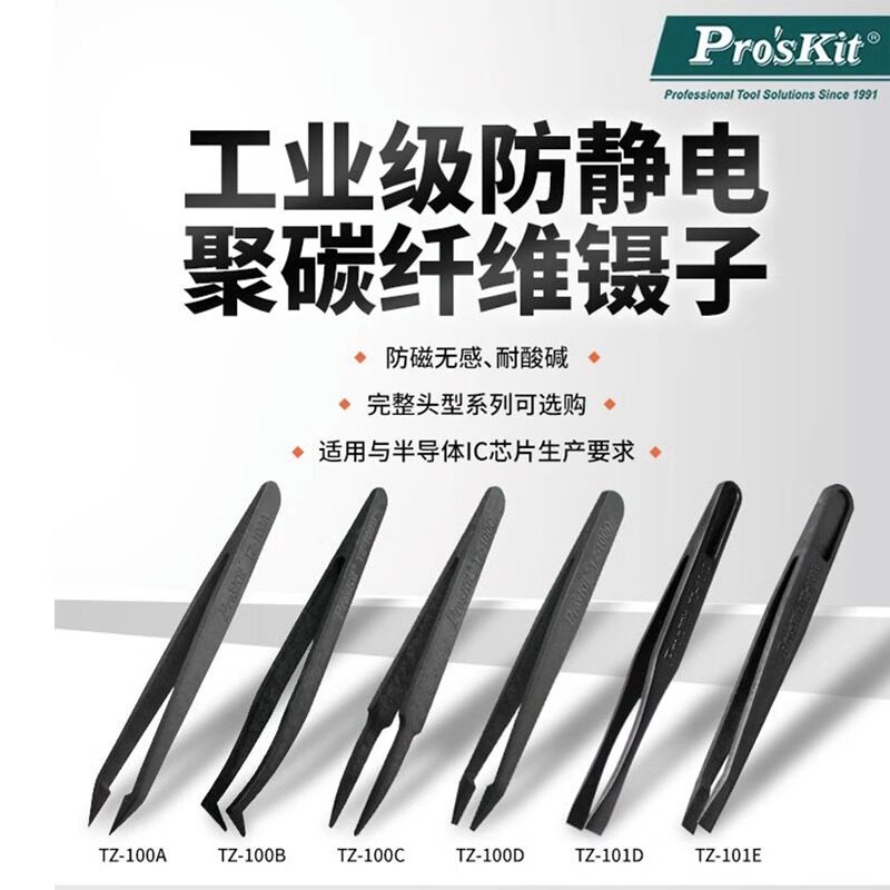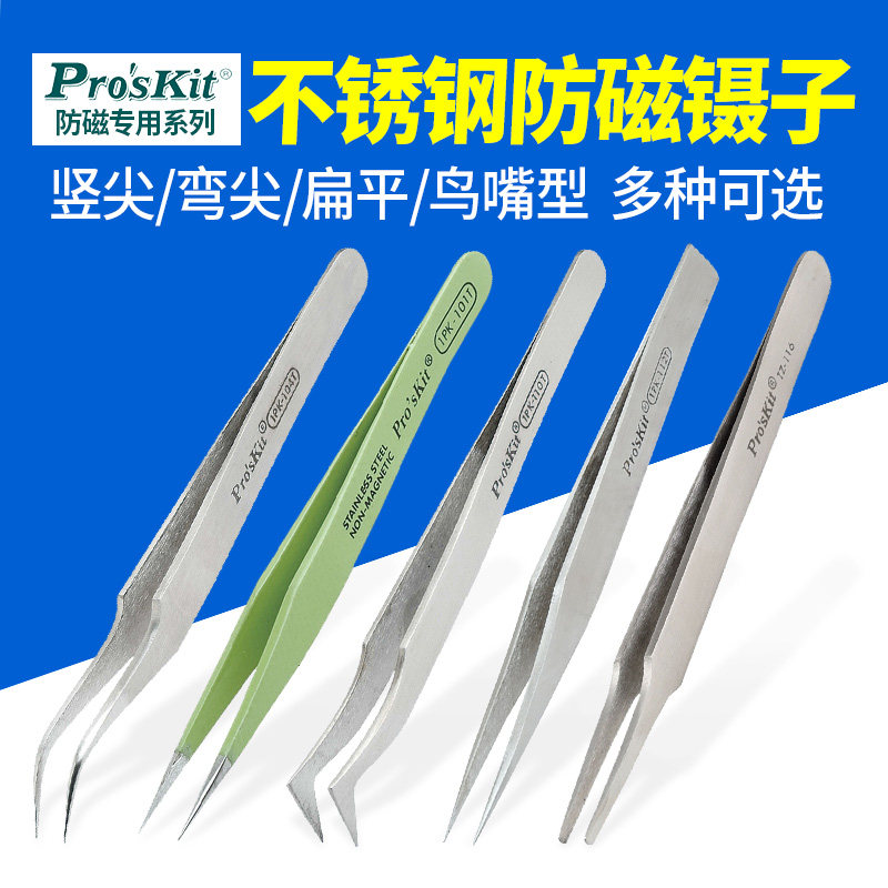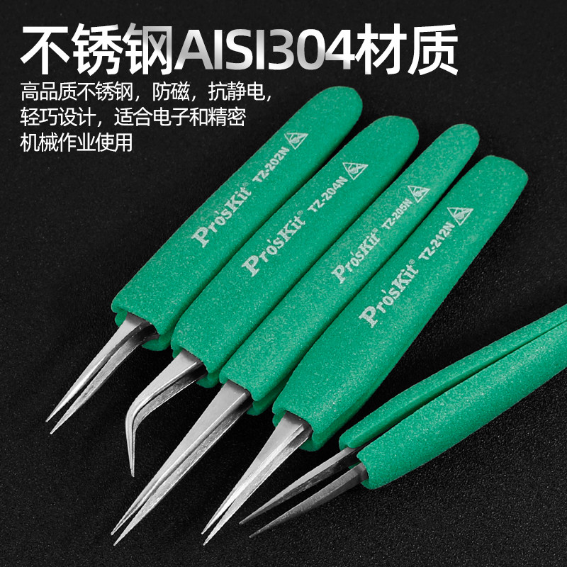 宝工不锈钢防磁特纤维塑料抗静电防滑特尖圆弯平扁头绝缘镊子,专为精密电子作业设计。采用优质不锈钢材质,具备优异的防磁与抗腐蚀性能,搭配特纤维塑料手柄,有效防止静电积聚,保障敏感元器件安全。手柄表面防滑纹理设计,握持舒适稳固,操作精准。提供特尖、圆头、弯头、平头、扁头等多种头型,满足不同场景夹持需求。整体具备优良绝缘性能,适用于电子维修、实验室、医疗器械等高精度操作环境。结构坚固耐用,细节工艺精湛,是工程师与技术人员的理想工具选择。
