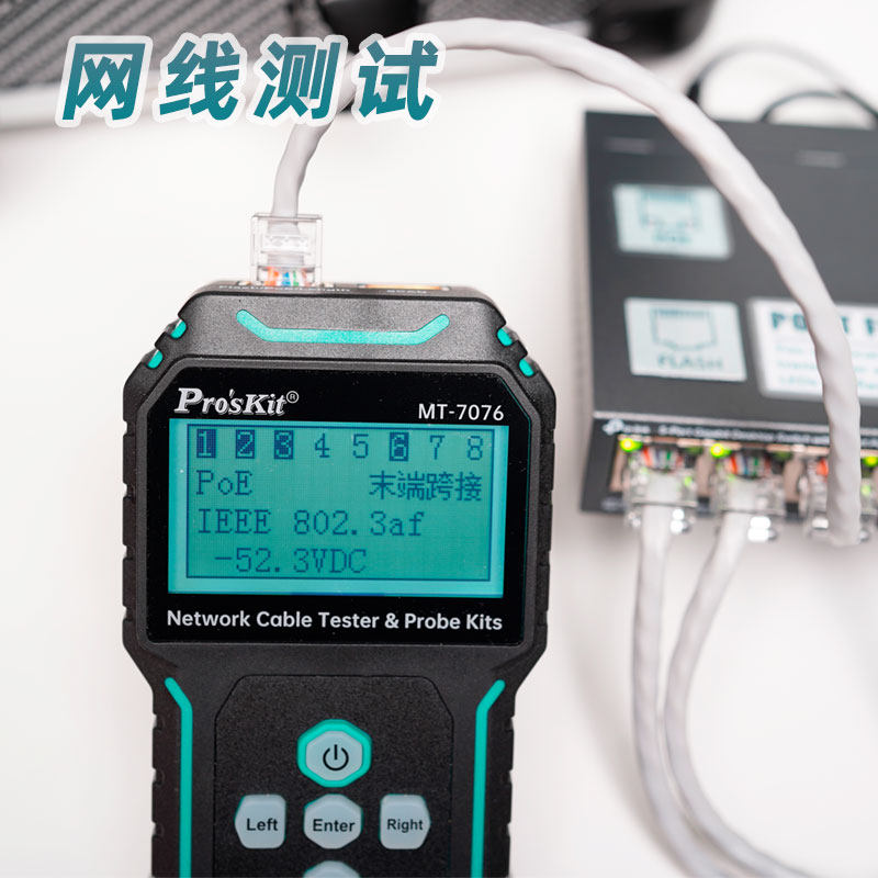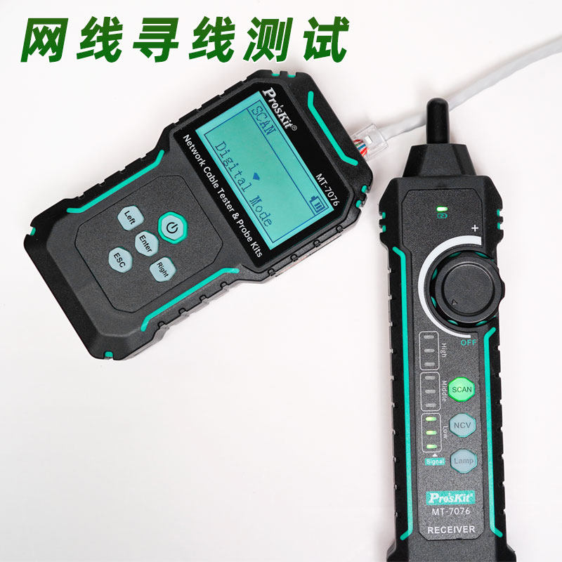 宝工网络测试器寻线仪MT-7076是一款多功能、高精度的网络线路检测工具,集寻线、测线、POE检测与抗干扰功能于一体。支持在带电状态下安全寻线,有效避免断电困扰,大幅提升布线排查效率。其强抗干扰能力确保在复杂电磁环境中仍能精准识别目标线缆。设备配备高灵敏度探头与清晰LED指示,可快速定位网线、电话线及同轴电缆。同时支持POE电压检测(24V/48V),帮助判断供电状态,适用于网络工程、安防安装及弱电维护等场景。MT-7076体积小巧、操作简便,是专业技术人员高效排障的理想助手。
