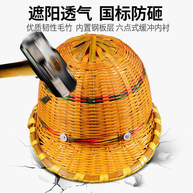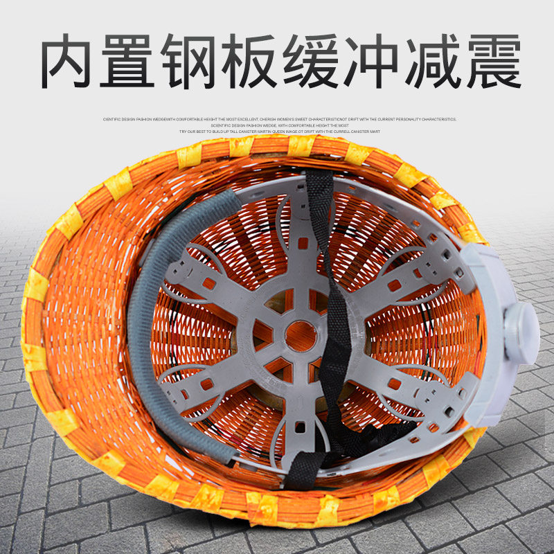 天超大沿竹编安全帽夏季透气施工地男防护晒砸遮阳藤帽子国标建筑工