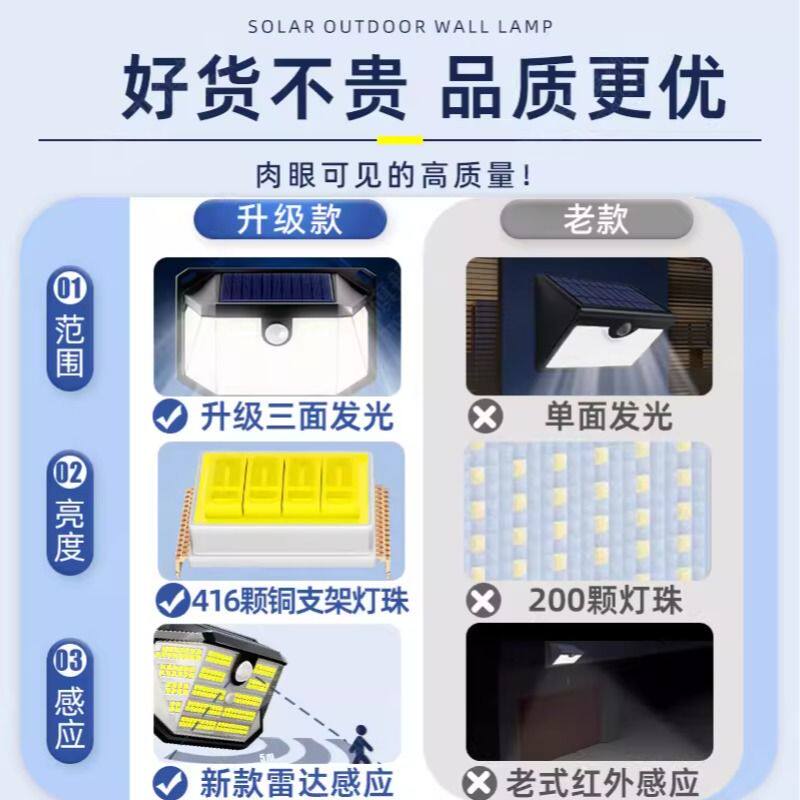 天猫2026新款太阳能家用庭院灯户外室外防水超亮感应照明花园外墙壁灯
