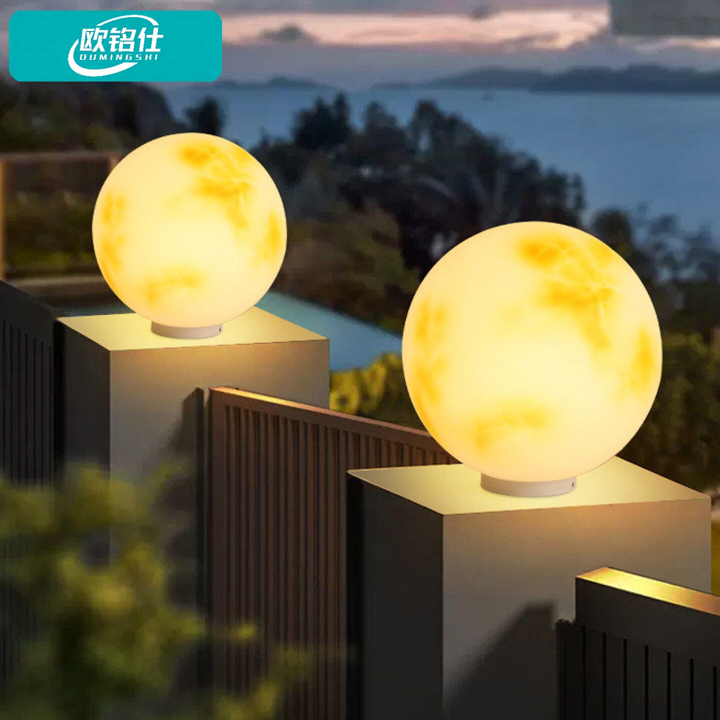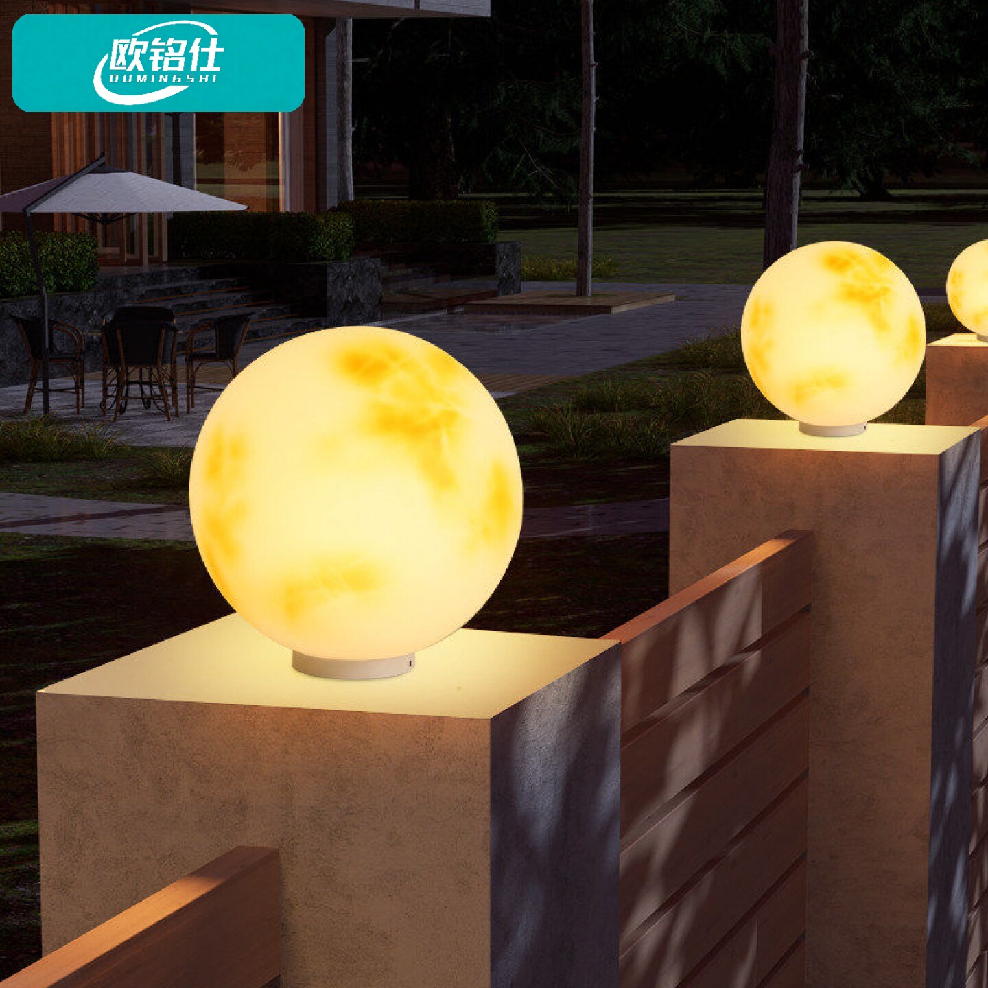 淘宝欧铭仕太阳能柱头灯月球灯户外庭院灯别墅圆球花园围墙灯月亮灯