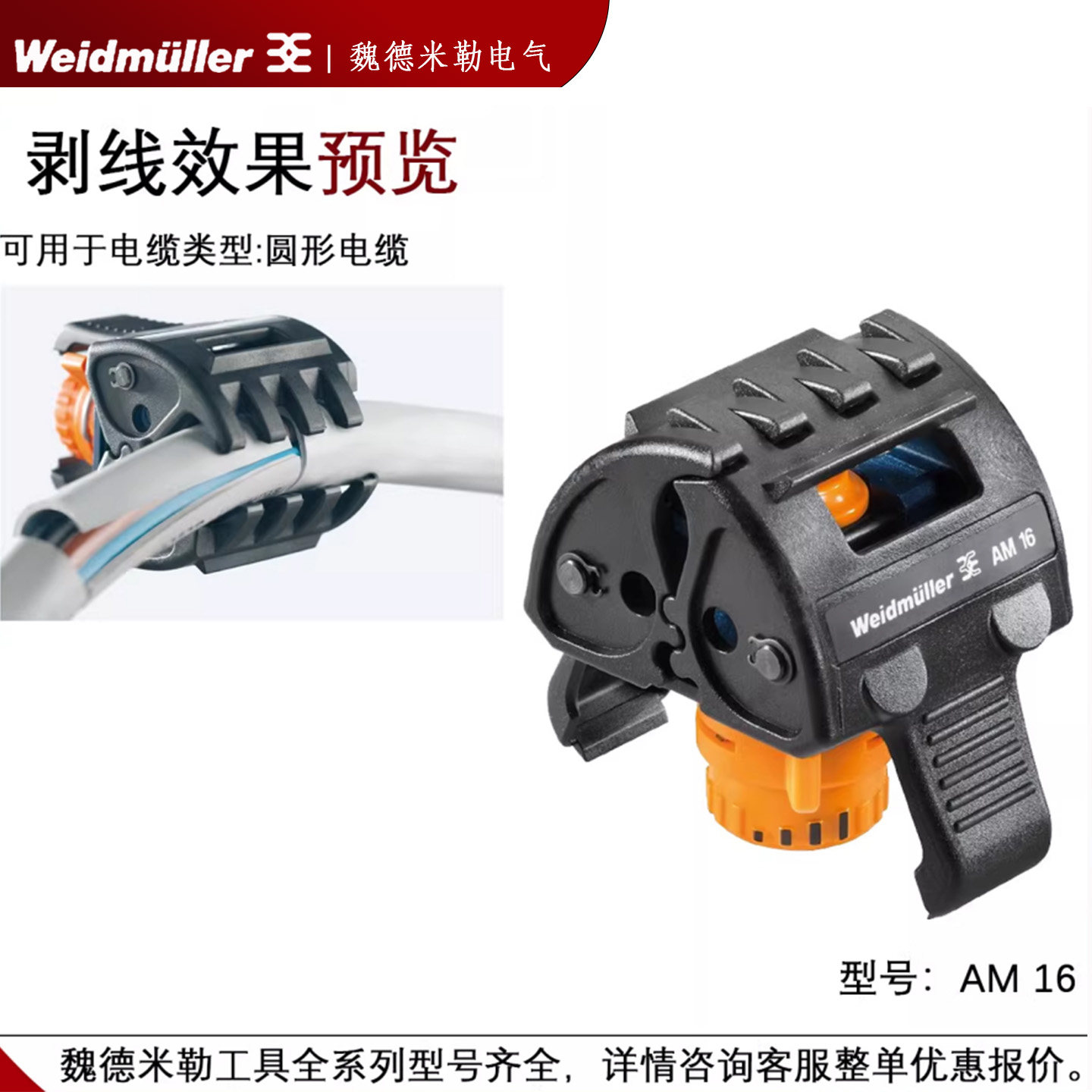 淘宝AM 16 正品魏德米勒 PVC 屏蔽线 电缆剥线钳 剥线工具 9204190000