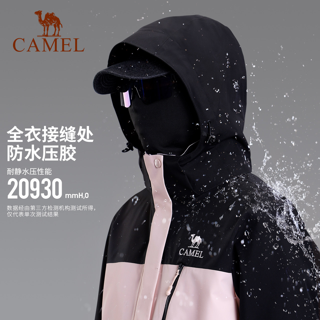 天猫骆驼户外三防冲锋衣女三合一2026新款拼色外套防风防水登山服装男