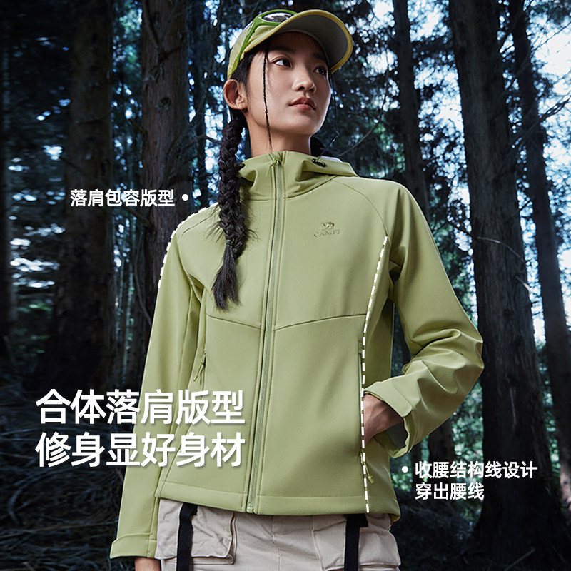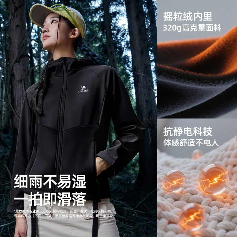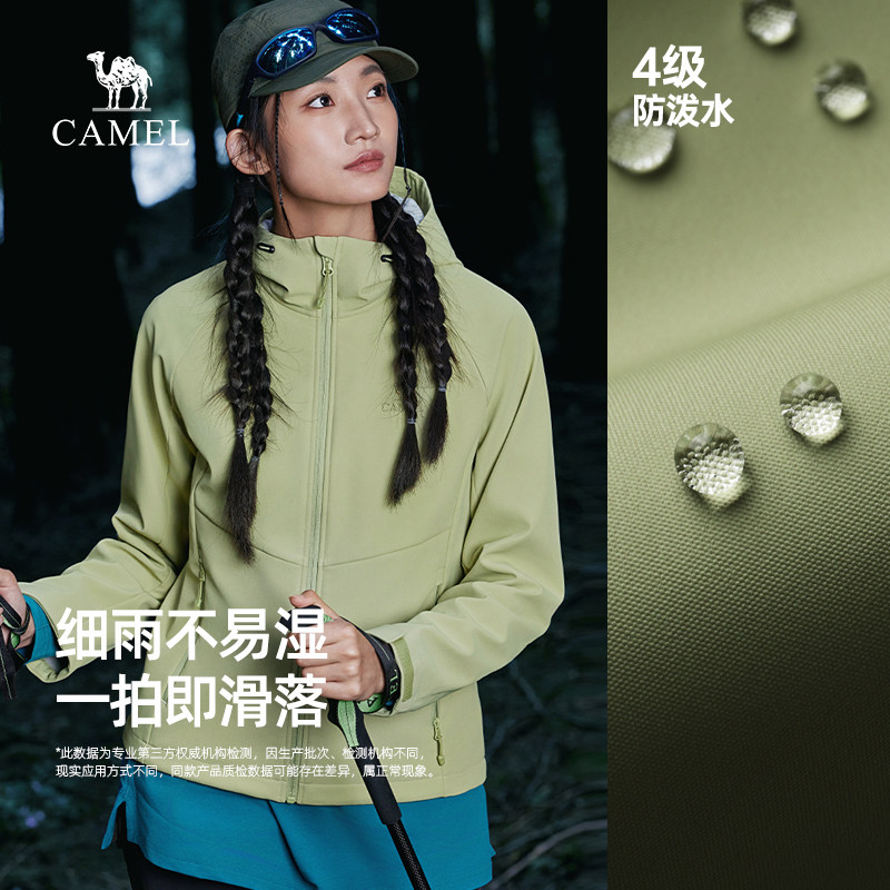 淘宝骆驼软壳衣男女同款春秋户外登山服防风徒步运动连帽外套休闲上衣