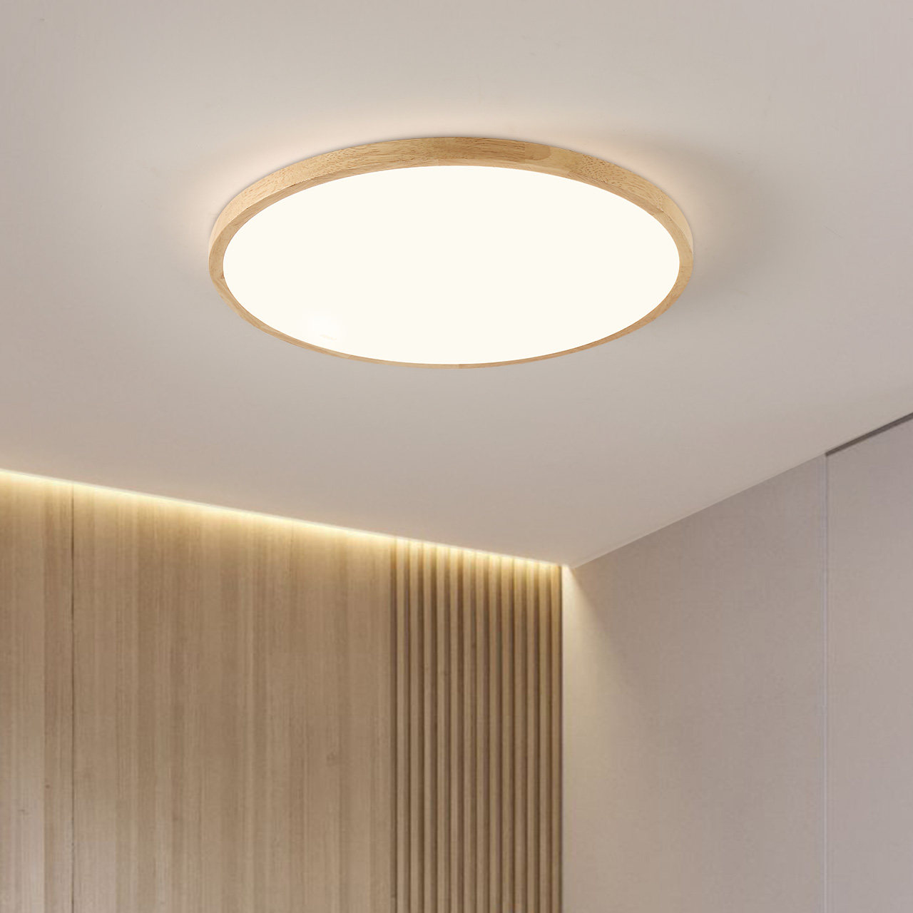 天雷士照明中古风吸顶灯超薄超亮胡桃木纹客厅卧室未来光全屋灯具