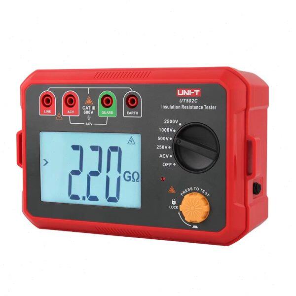 优利德UT501C/UT502C数字兆欧表是一款智能型绝缘电阻测试仪,专为电力、通信、建筑等行业设计。该系列产品采用高精度数字处理技术,具备宽广的测试量程(最高可达5000MΩ),支持多档测试电压(如500V、1000V、2500V等),可精准测量电气设备、电缆、电机及变压器的绝缘性能。配备大屏幕背光LCD,数据清晰易读,具备自动放电、实时电压监测、数据存储及蓝牙连接功能(UT502C支持),操作简便且安全可靠。符合IEC61010安全标准,具备CAT III 1000V防护等级,适用于多种复杂工况,是专业电工维护与检测的理想工具。