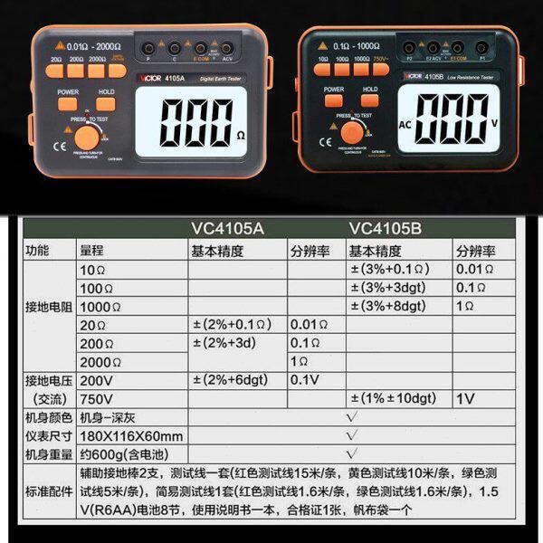 淘宝胜利VC4105A/B/C数字接地电阻测试仪VC4106C/6410/6412兆欧表摇表