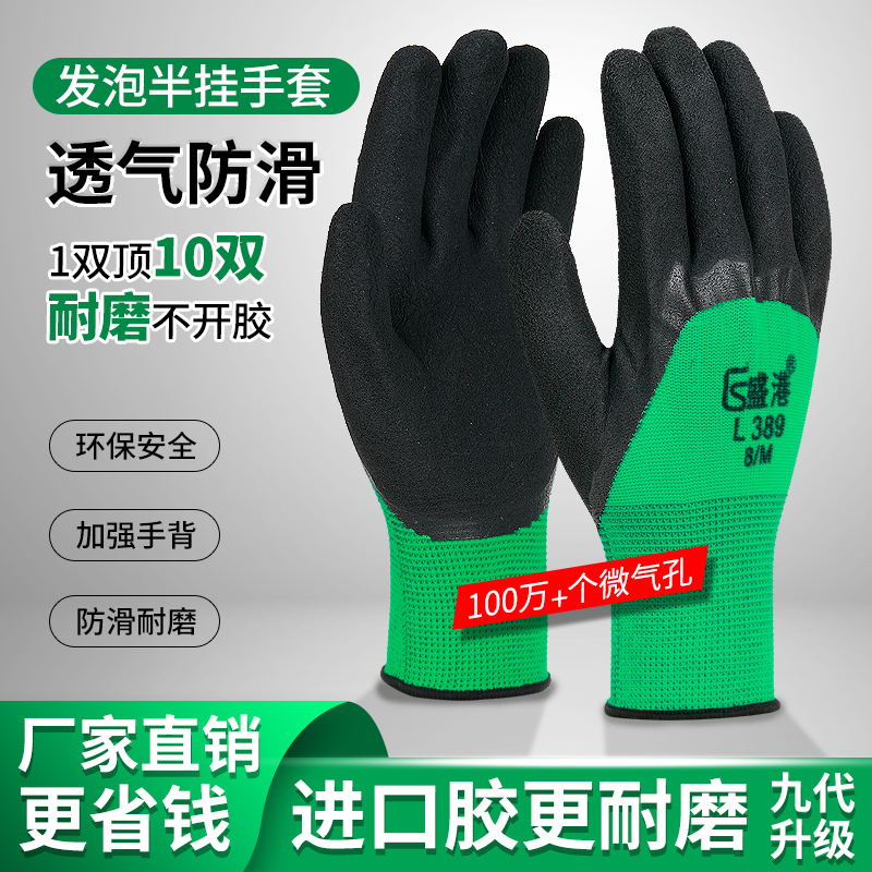 天猫手套男工地干活发泡王耐磨浸胶防护透气防滑挂胶带胶涂胶工作劳保