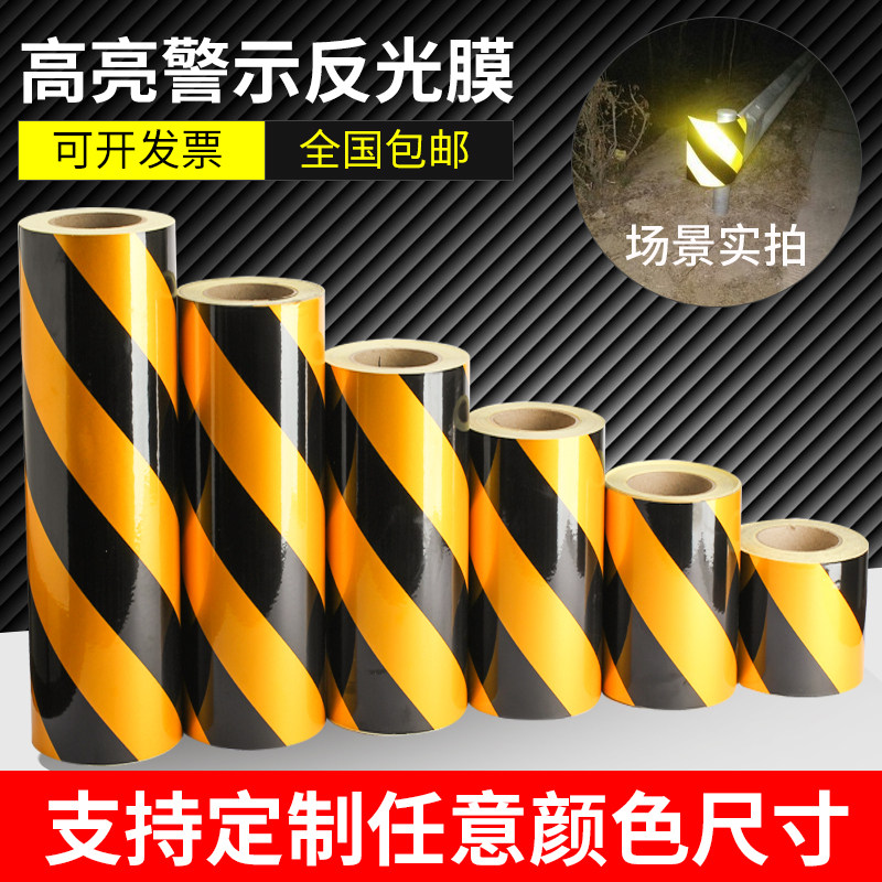 淘宝黑黄红白反光贴膜5cm10cm警示胶带地贴条防水安全标识贴纸反光贴