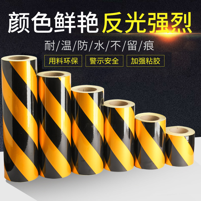 淘黑黄斜纹反光膜警示胶带反光贴条地贴纸防水安全标识警戒防撞条