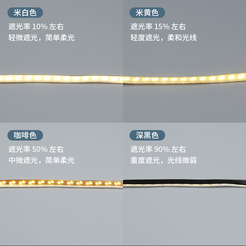 灯带遮光胶带、遮光条、遮光罩、柔光贴及防刺眼灯膜,是专为LED灯带设计的辅助配件,有效解决灯光刺眼、漏光、眩光等问题。采用耐高温、绝缘材质制成,安全可靠,适用于室内外多种环境。遮光条与遮光罩可精准遮挡多余光线,提升照明质感;柔光贴与防刺眼灯膜则能均匀散射光线,营造柔和舒适的视觉体验。产品背胶牢固,安装便捷,广泛运用于家居照明、商业展示、橱柜灯带及广告灯箱等场景,兼具美观与实用,是优化灯光效果的理想选择。