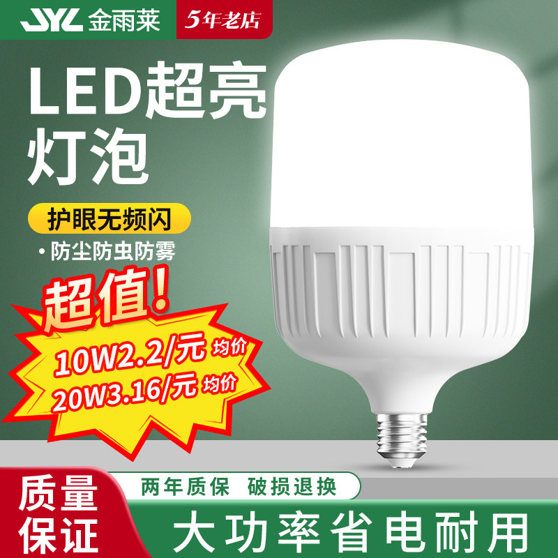 天猫led灯泡e27螺口家用工厂照明节能超亮老式卡口大功率白黄暖光球泡