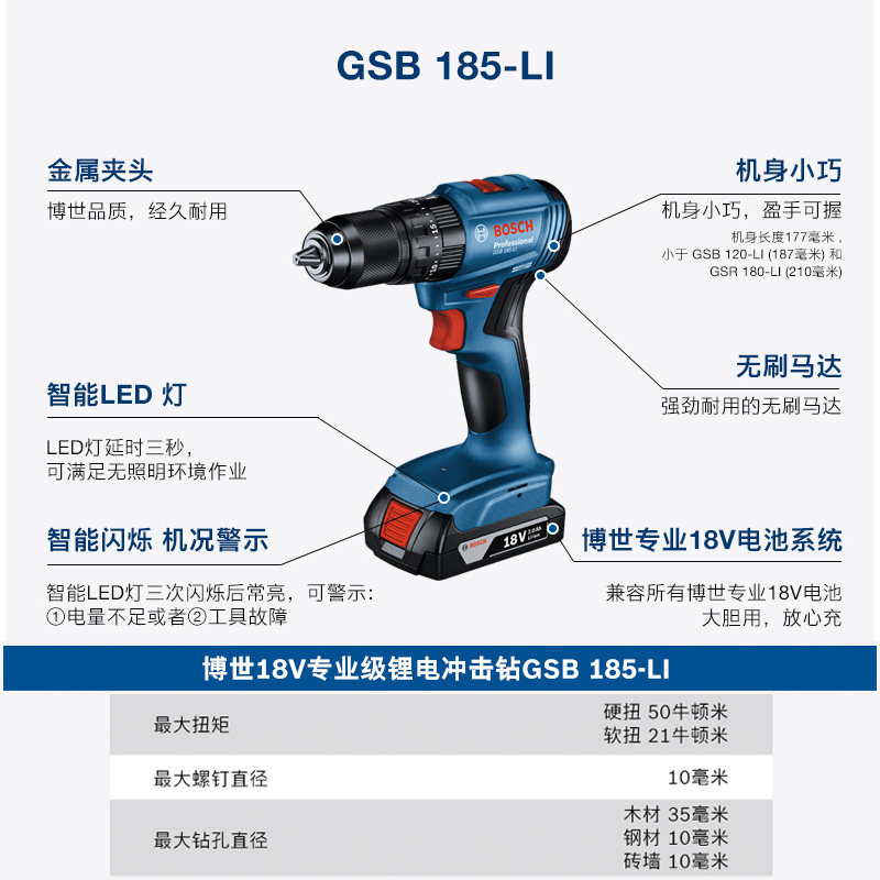 淘宝博世充电冲击钻GSB185/183/180锂电18V电动螺丝刀家用无刷手枪钻