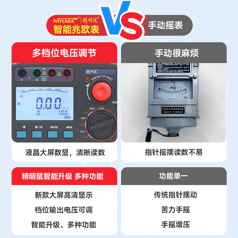 天猫精明鼠绝缘电阻测试仪数字电子兆欧表高压电工摇表500V漏电测量仪