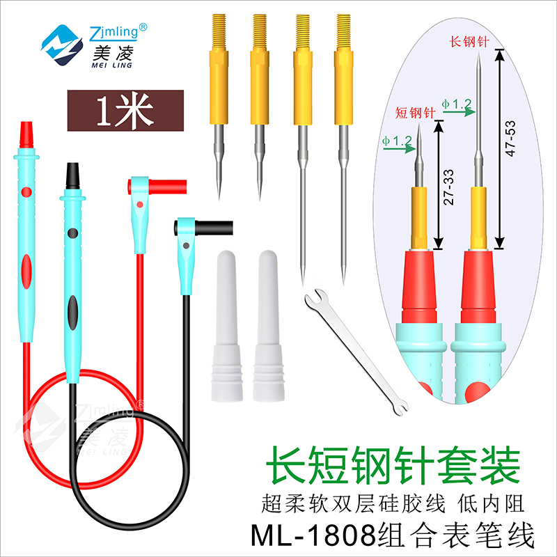 淘宝通用数字万用表表笔线 防冻超柔软硅胶特尖超长特细针钢针1808